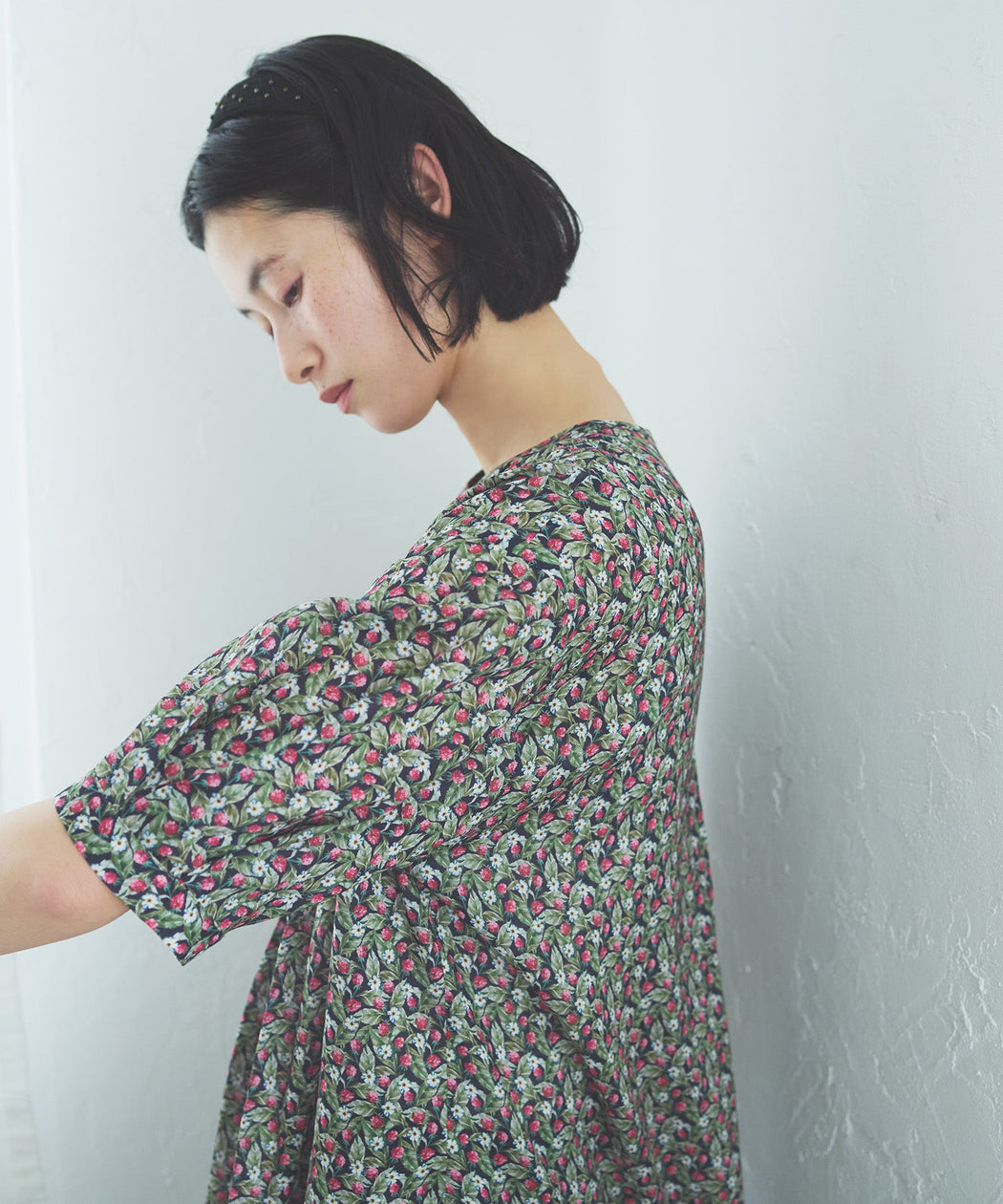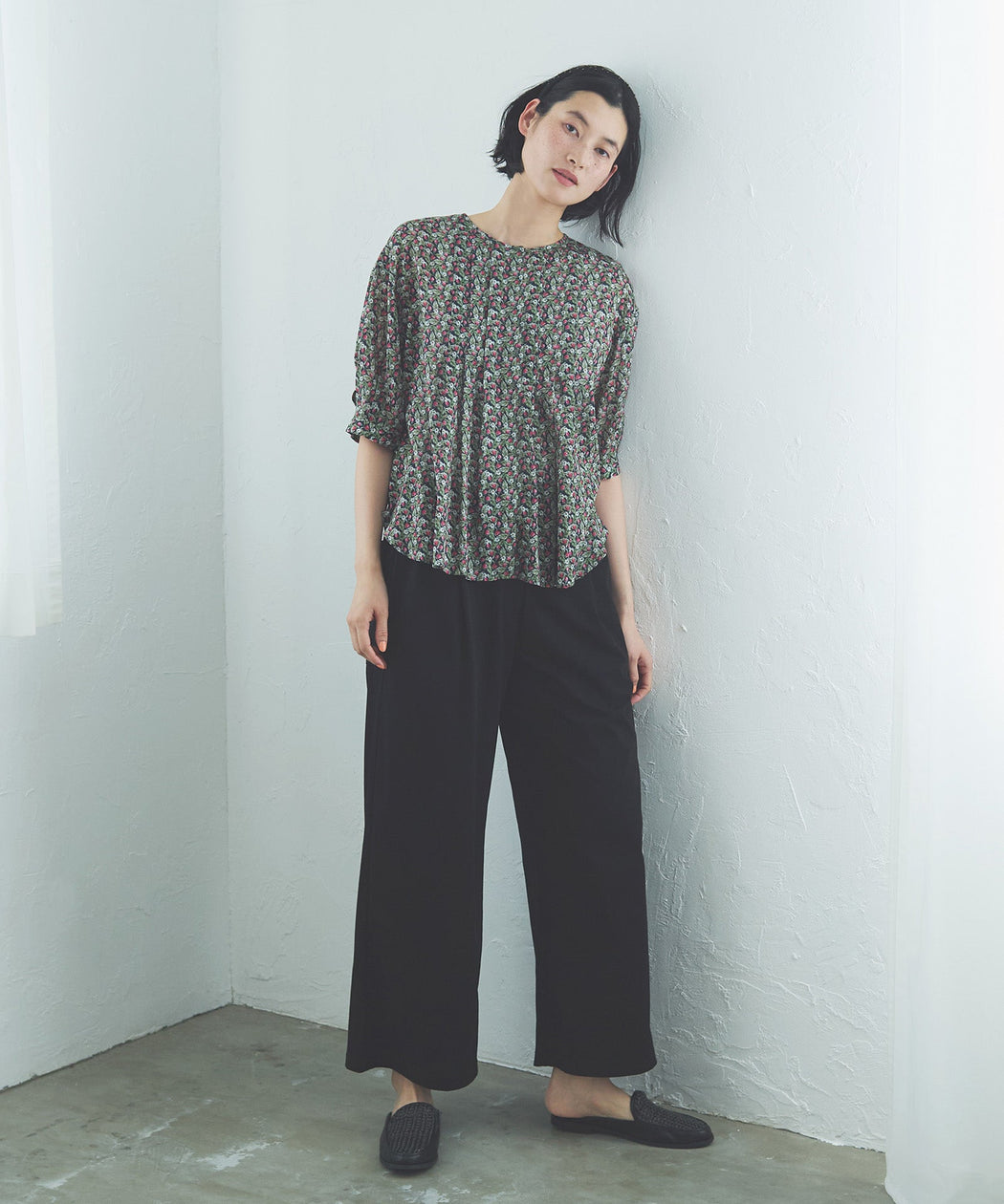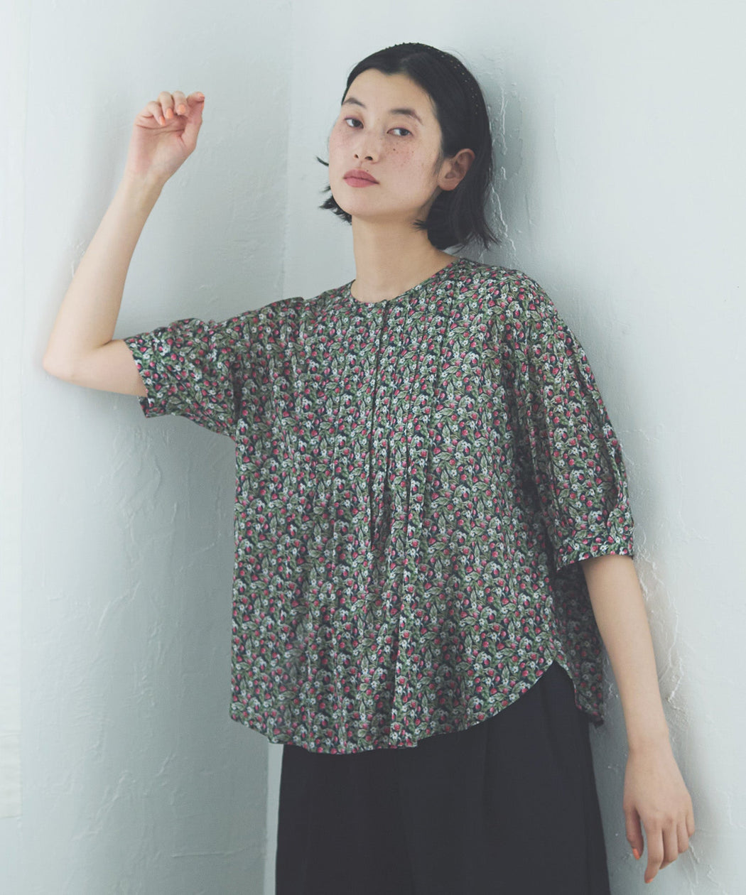 リバティプリントの柔らかいリヨセルローン素材を使用した、涼やかで上品なブラウスです。