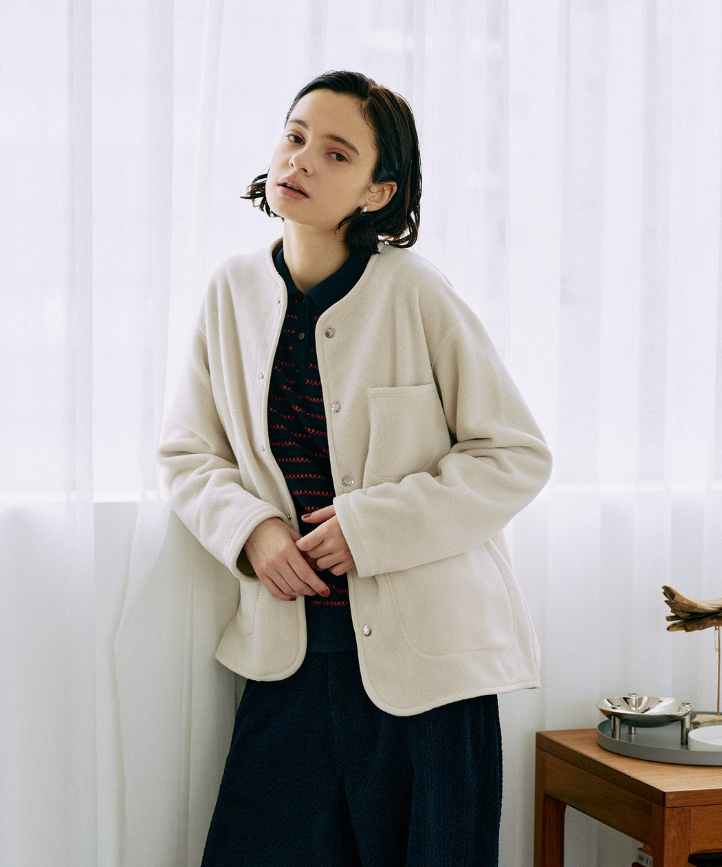 ノーカラーのためマフラーやストールとの相性がよく、ハイネックやパーカーなどのレイヤードも楽しめます。