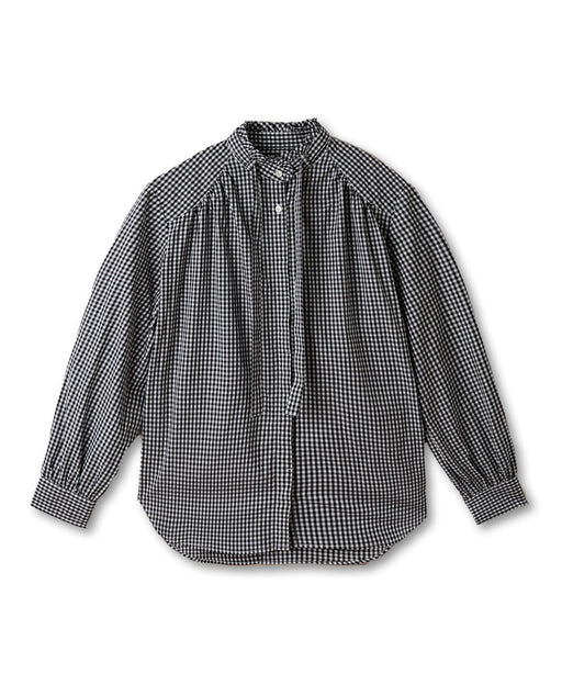 チェックスタンドギャザーブラウス