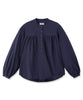 胸の切り替えギャザーや背面のハンガーループなど、細部にまでこだわった大人のブラウスです。