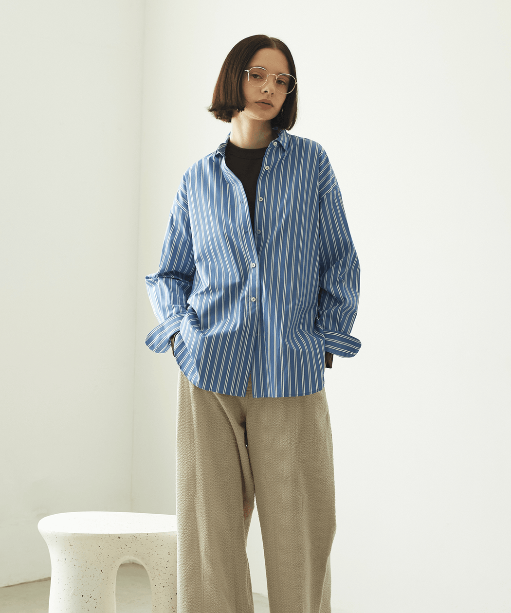 イタリア製生地を贅沢に使用したランダムストライプシャツ