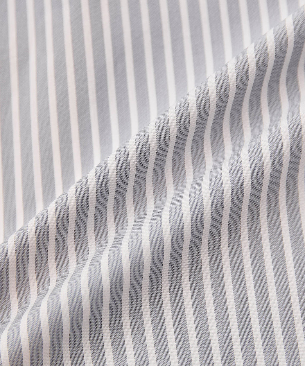 柔らかい印象のグレーストライプは、羽織りアイテムとのレイヤードでも洗練された雰囲気に仕上がります。