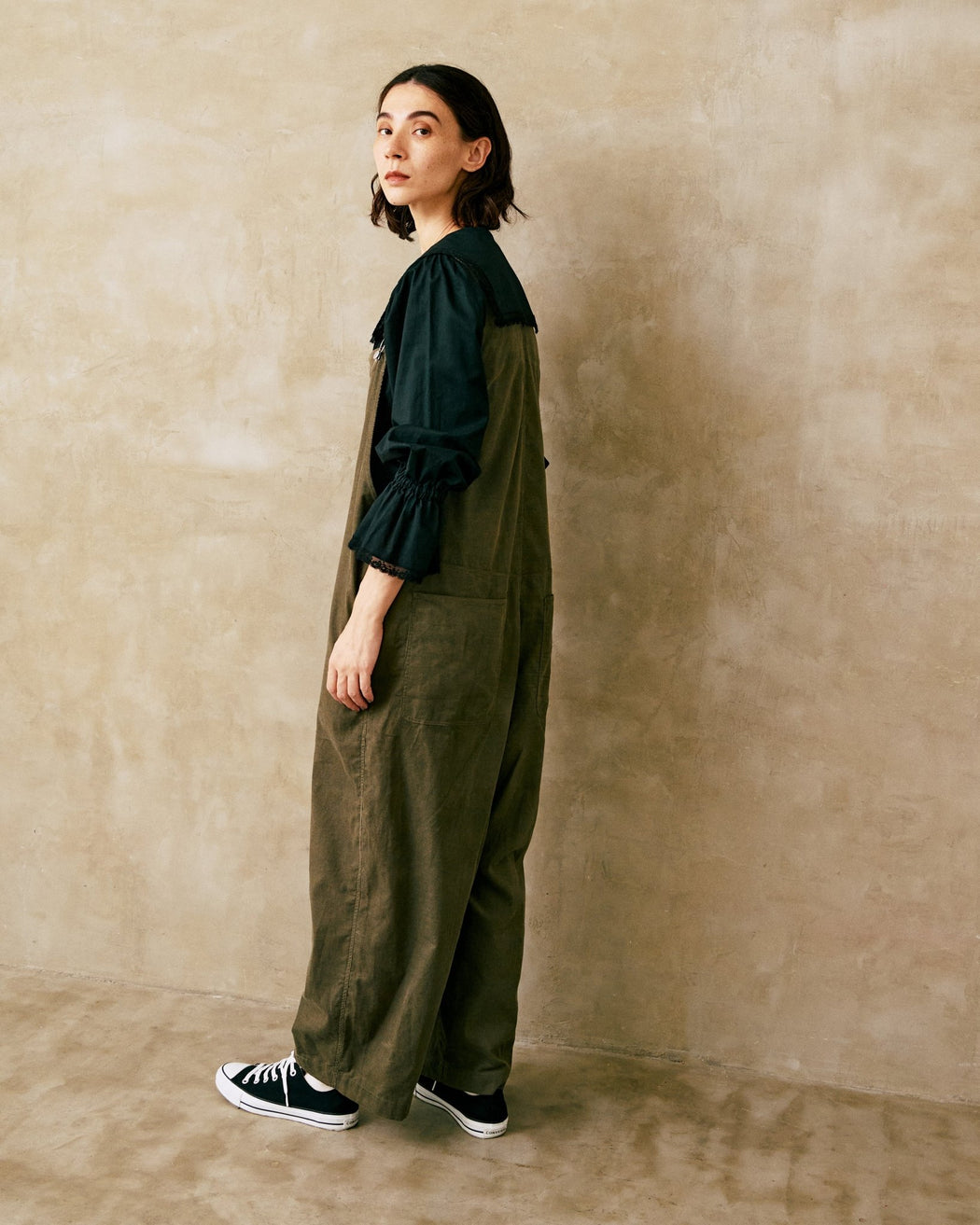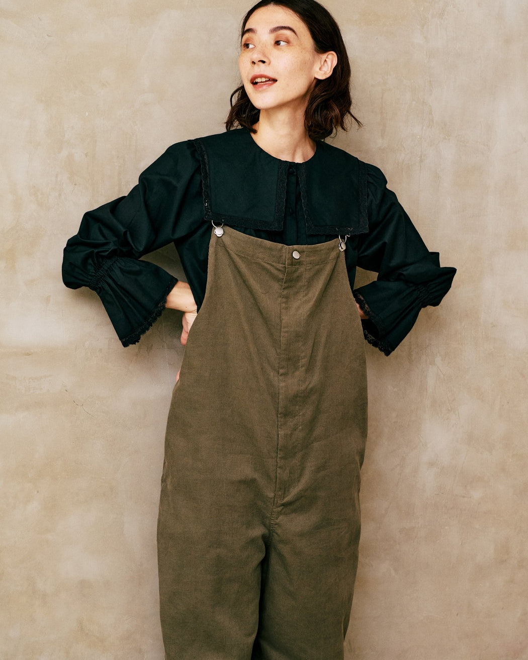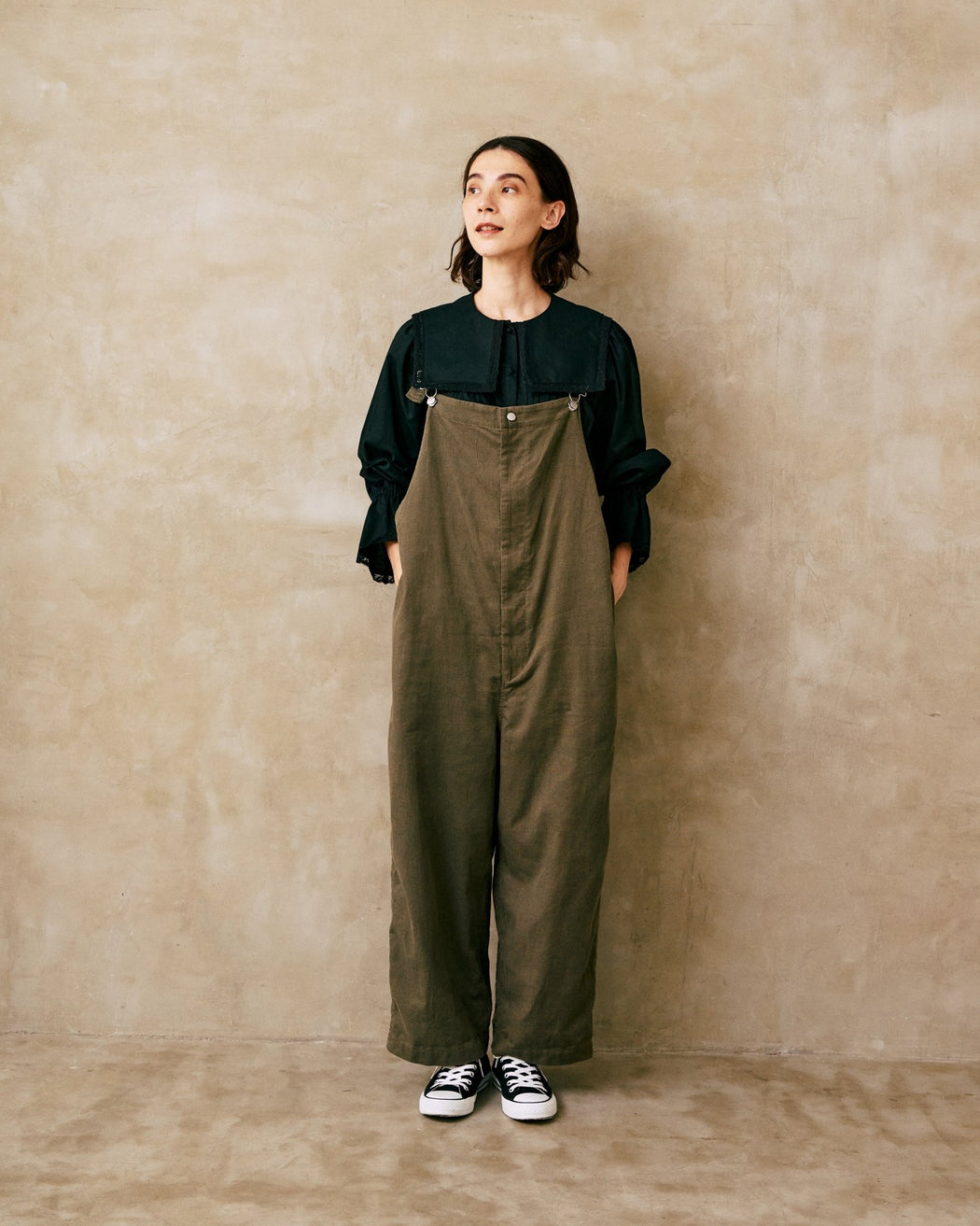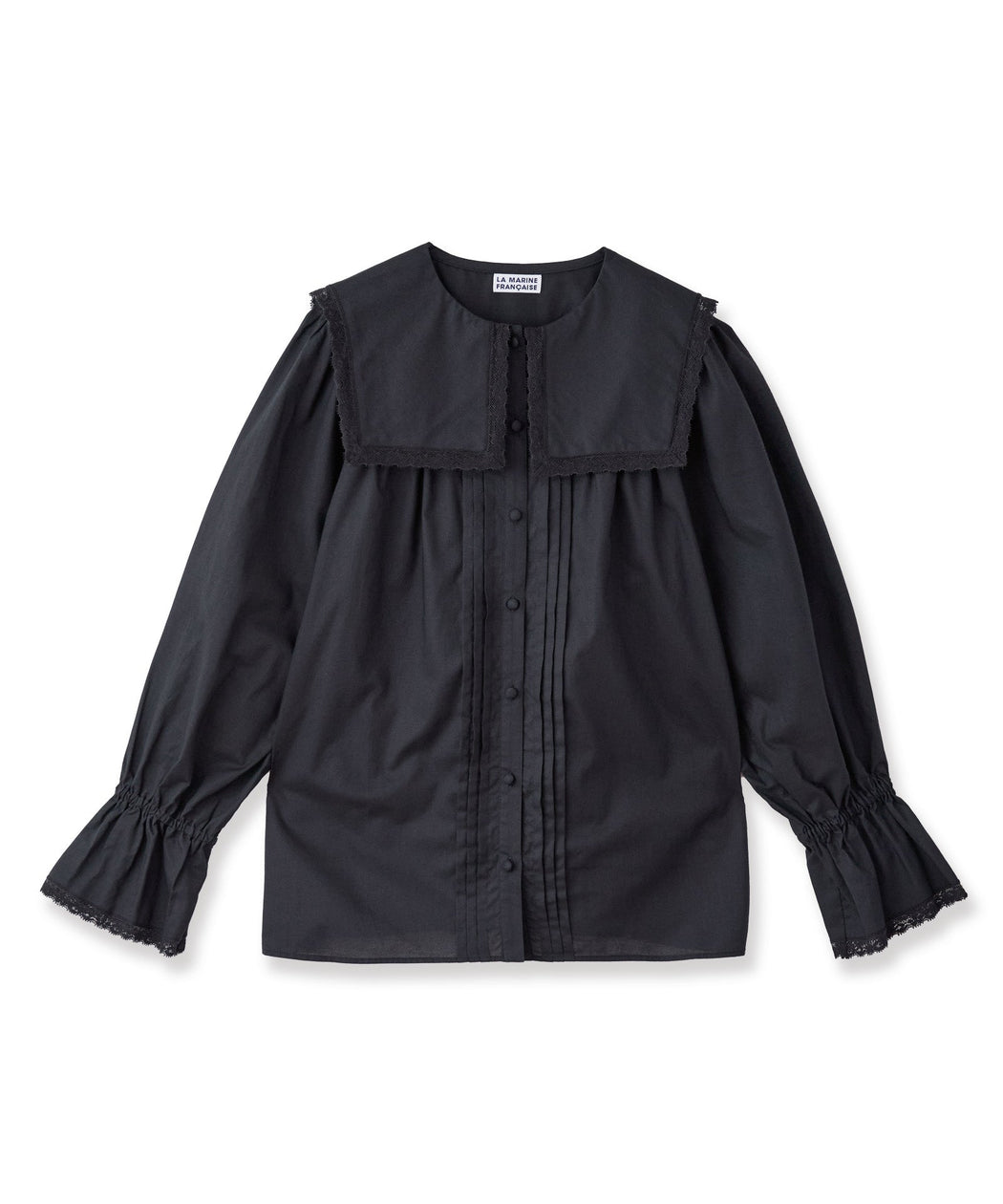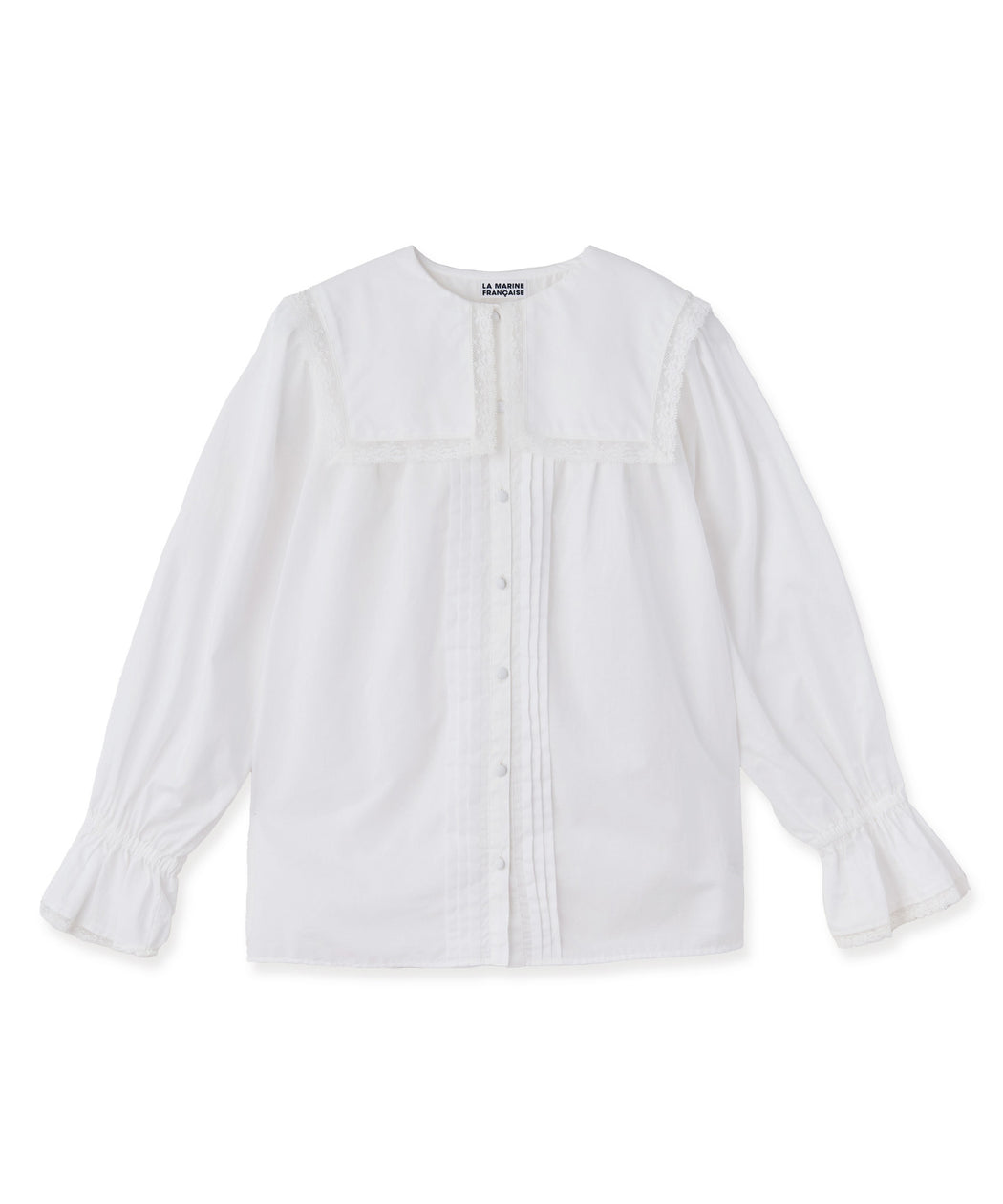 華やかなセーラーレース襟を引き立てるため、シンプルなテーパードパンツと合わせて上品に。オフィスやきれいめカジュアルにも最適。