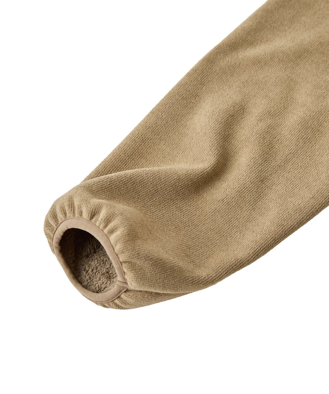 見た目はまるでニットのような表情感、でも実はふんわり柔らかいフリース素材。