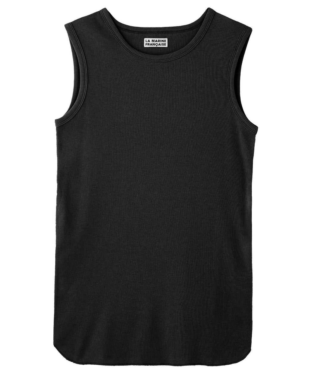 素材を使用したロングリブタンク 通常のタンクトップより長めの、ピップが完全に隠れる丈感です。
