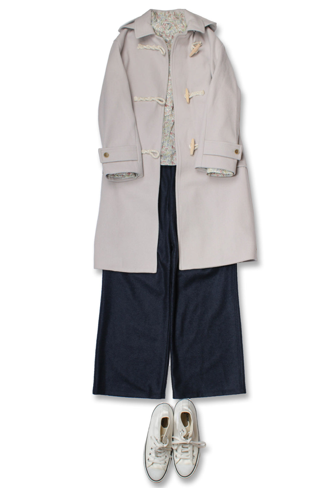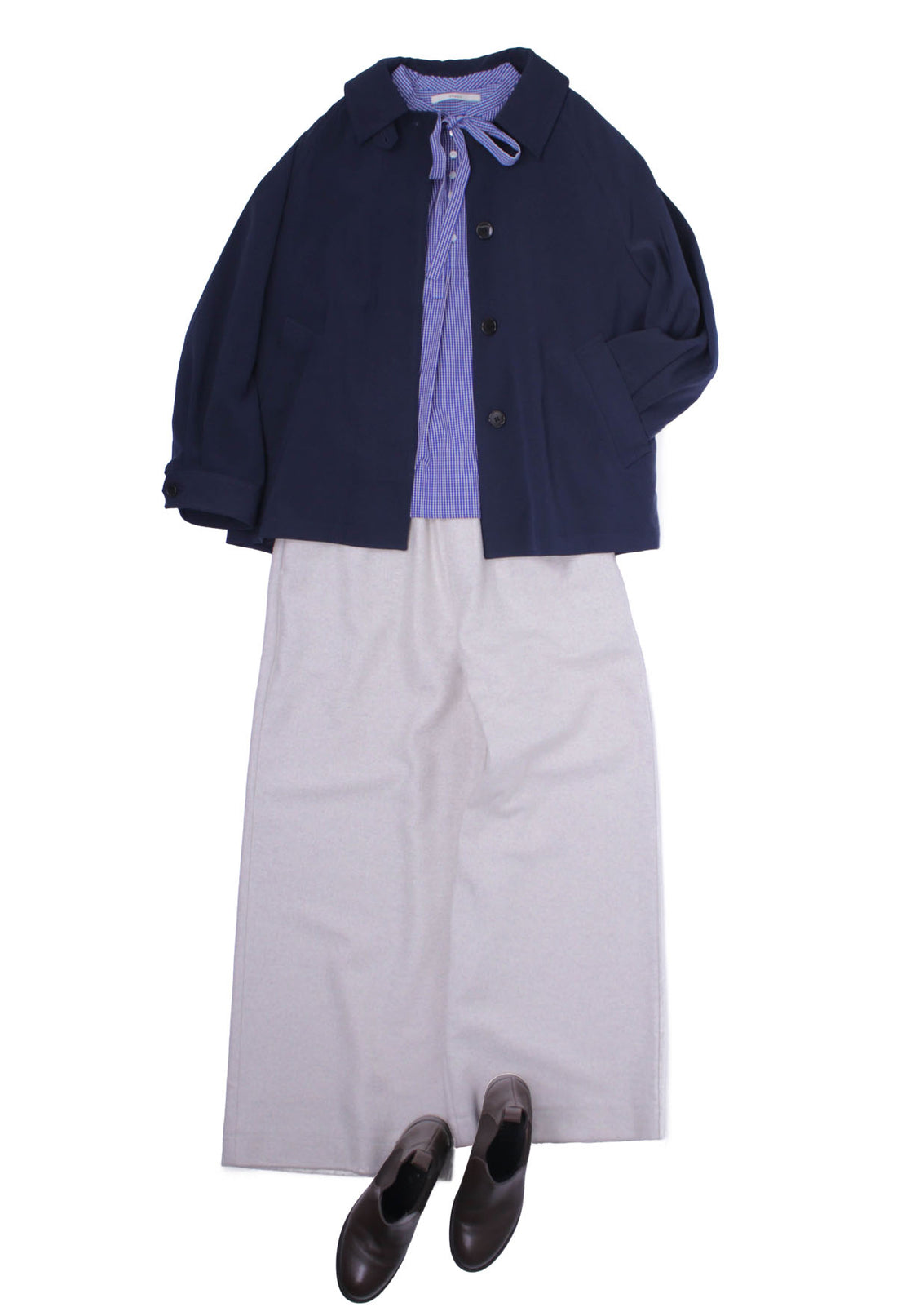 程よい厚みとハリ感のある素材が、ワイドシルエットをきれいに見せてくれるワイドシルエット。