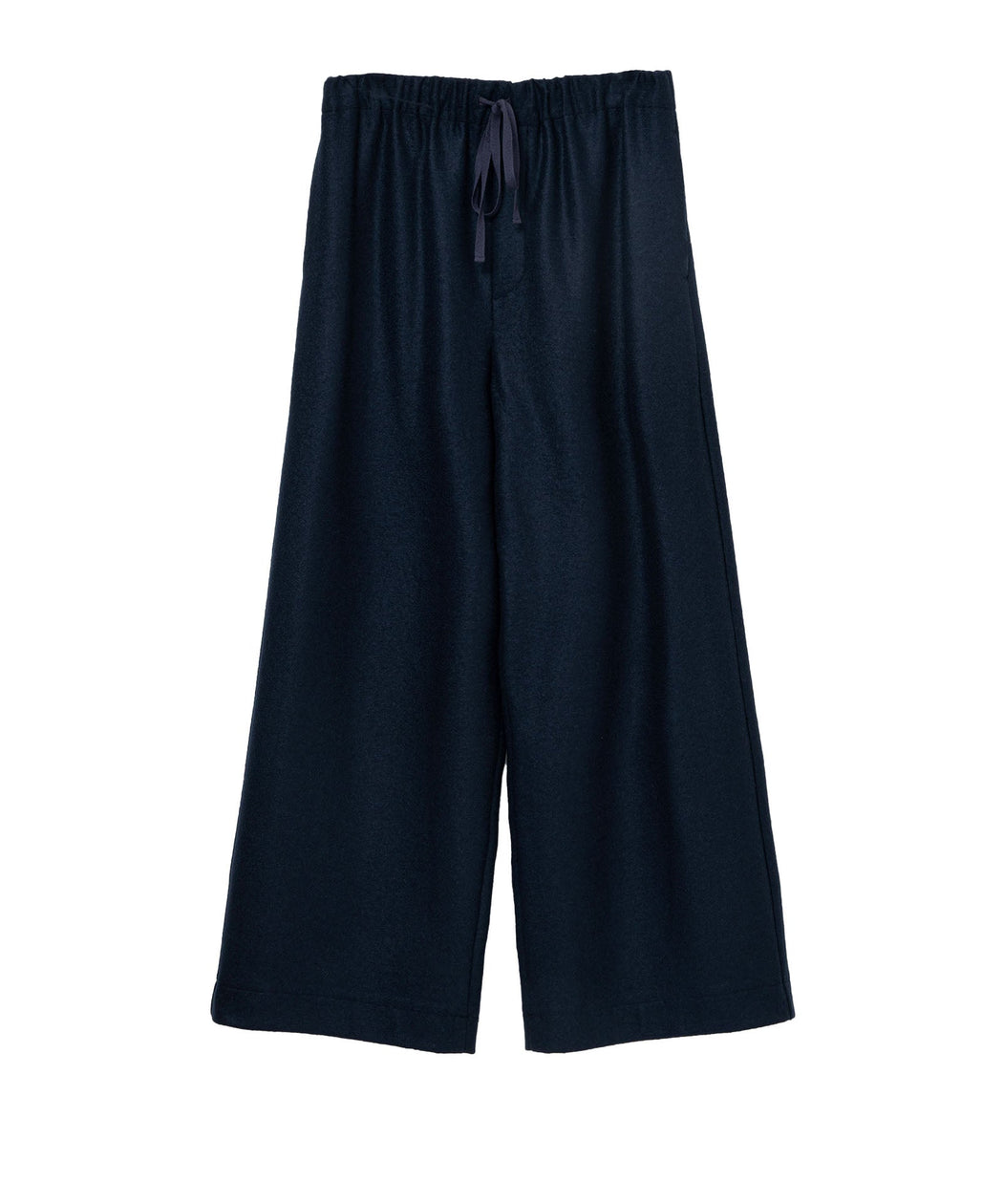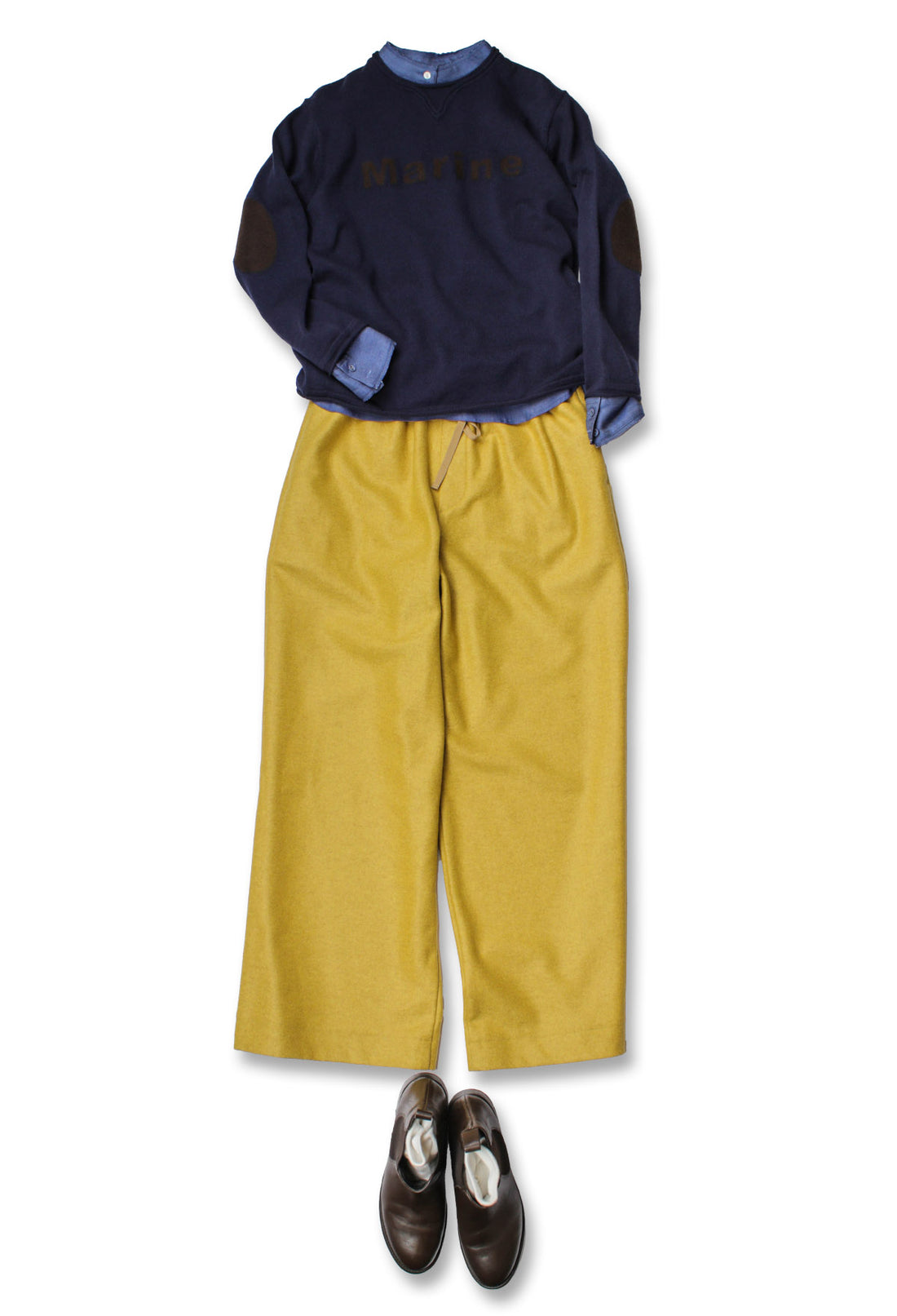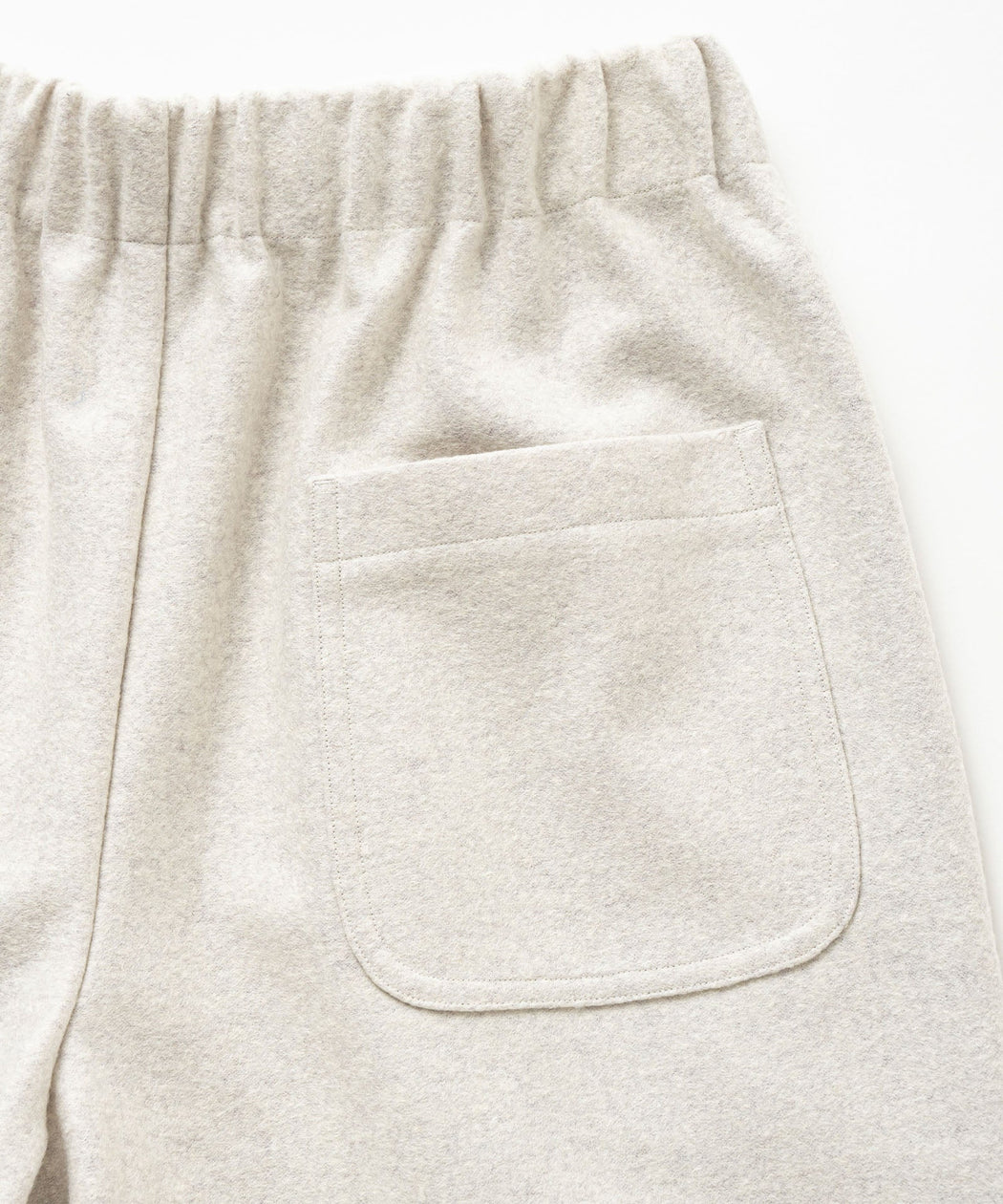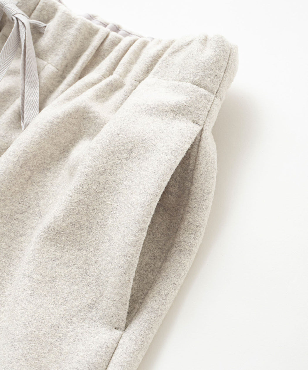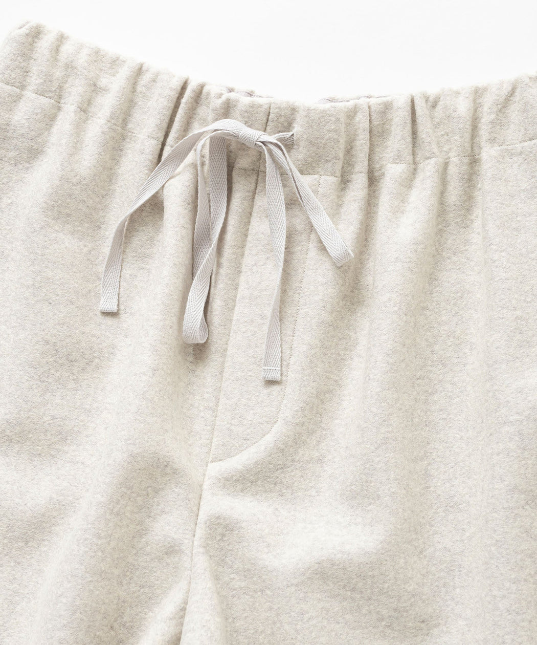 日本製のウールジャージー素材を使用したワイドシルエットのイージーパンツ