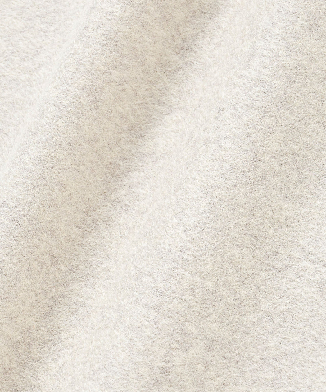 ふわふわとしたウールリングヤーンを用いた編み地に、強力な熱と圧力をかけた加工を施した独特な表情のウールジャージ素材を使用しました。