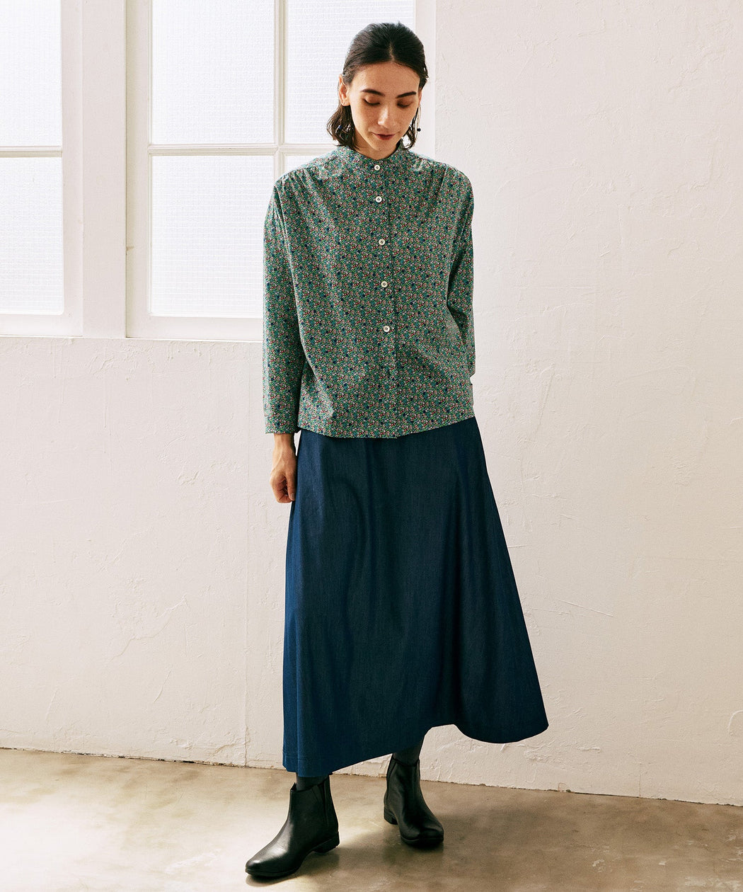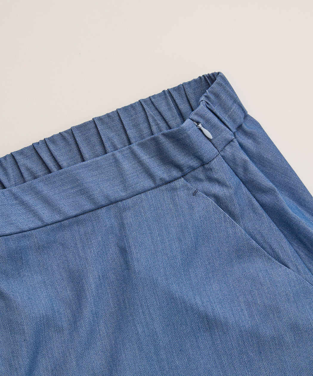 落ち感のある素材で着心地が良く、程よいAラインのトラペーズシルエットがどんなトップスともバランスよくまとまります。