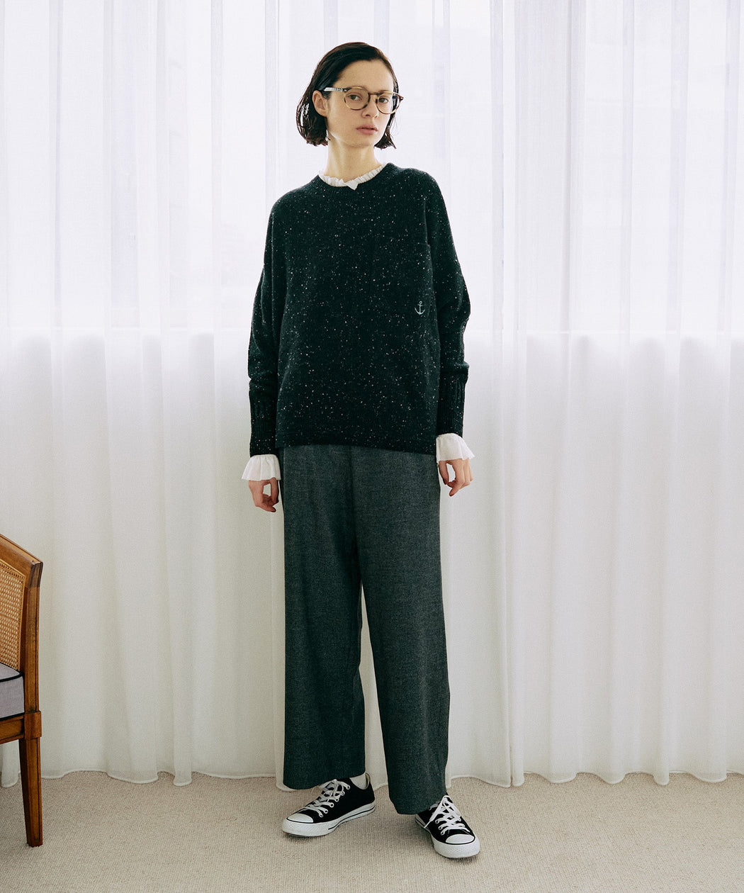 【ニット】 ボリュームニットを合わせて、リラックス感のある大人カジュアルスタイルに。