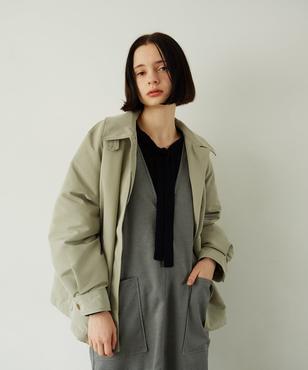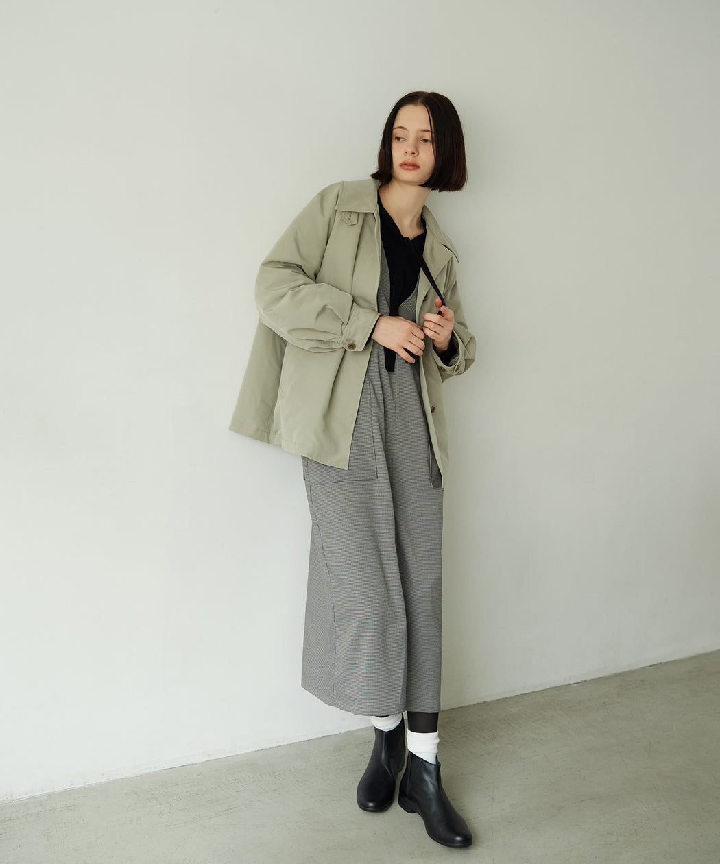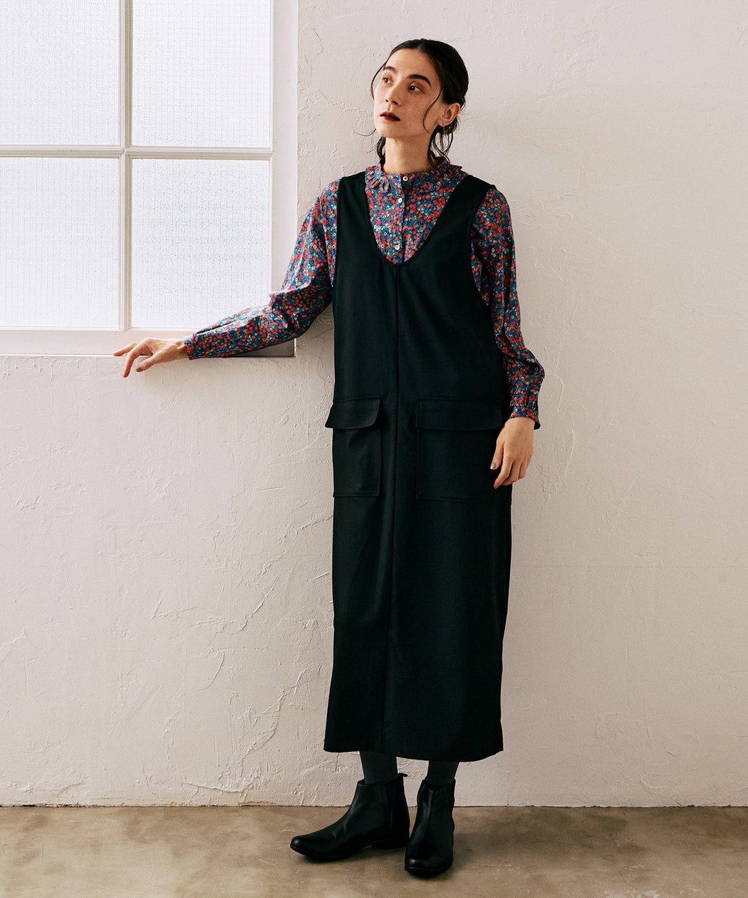 タートルネックニットや厚手のカットソーと重ねれば、シーズンムード高まるあたたかいレイヤードスタイルに。ショートブーツを合わせてバランスよくまとめるのもおすすめです。
