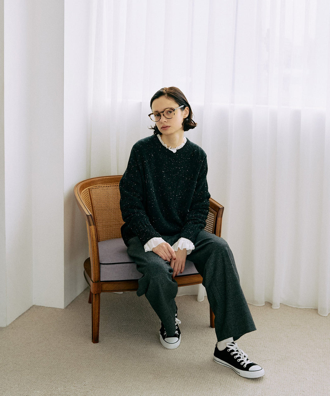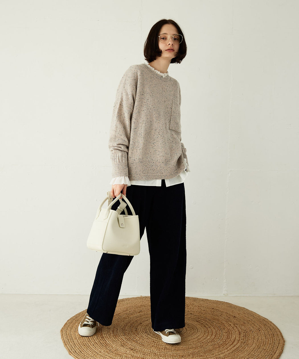 ストレートパンツを合わせて、クリーンで上品な大人カジュアルに。