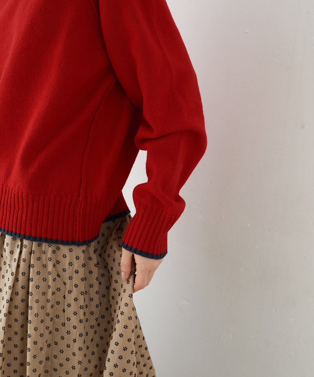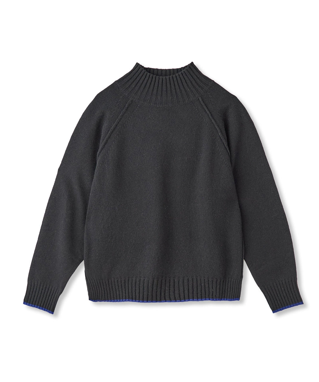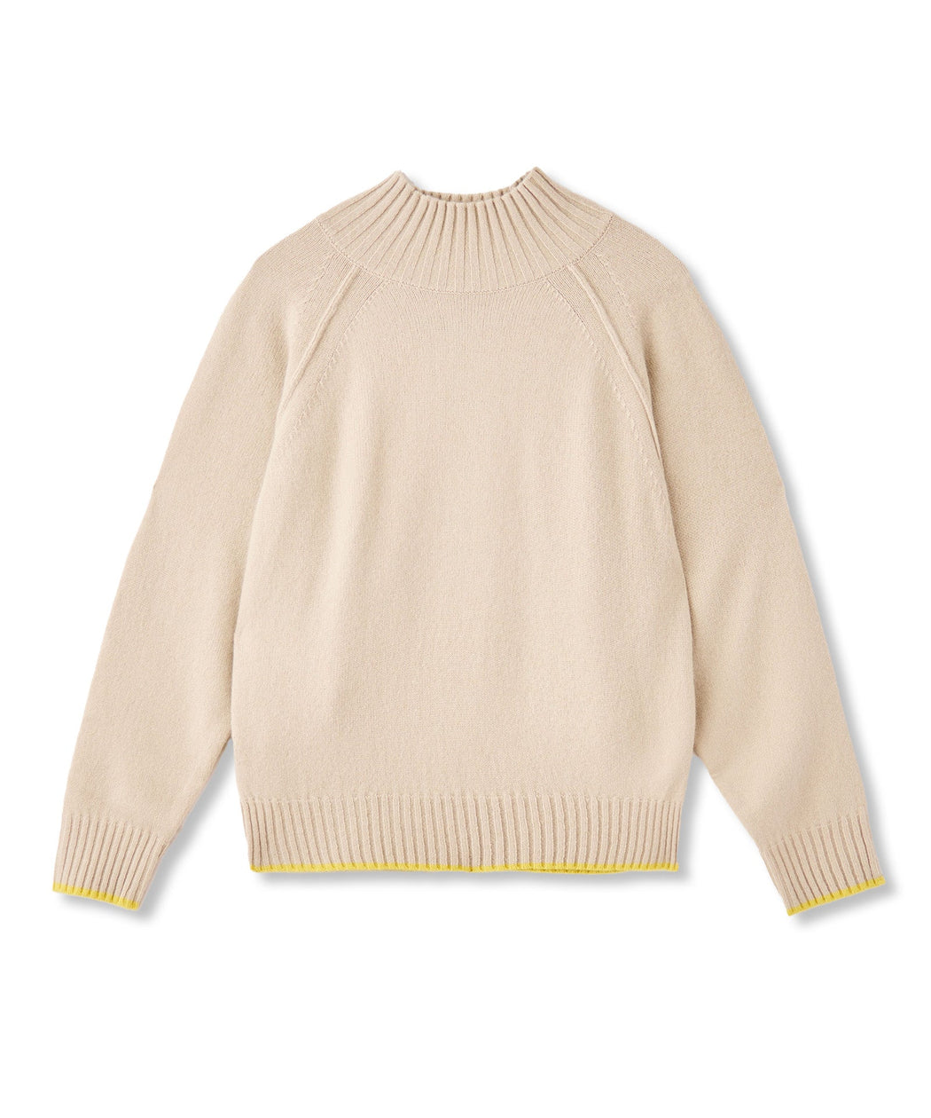 裾と袖口の配色がポイントになった、オフタートルプルオーバー。