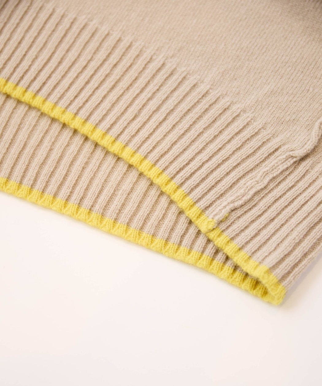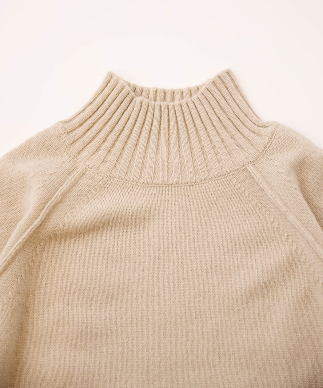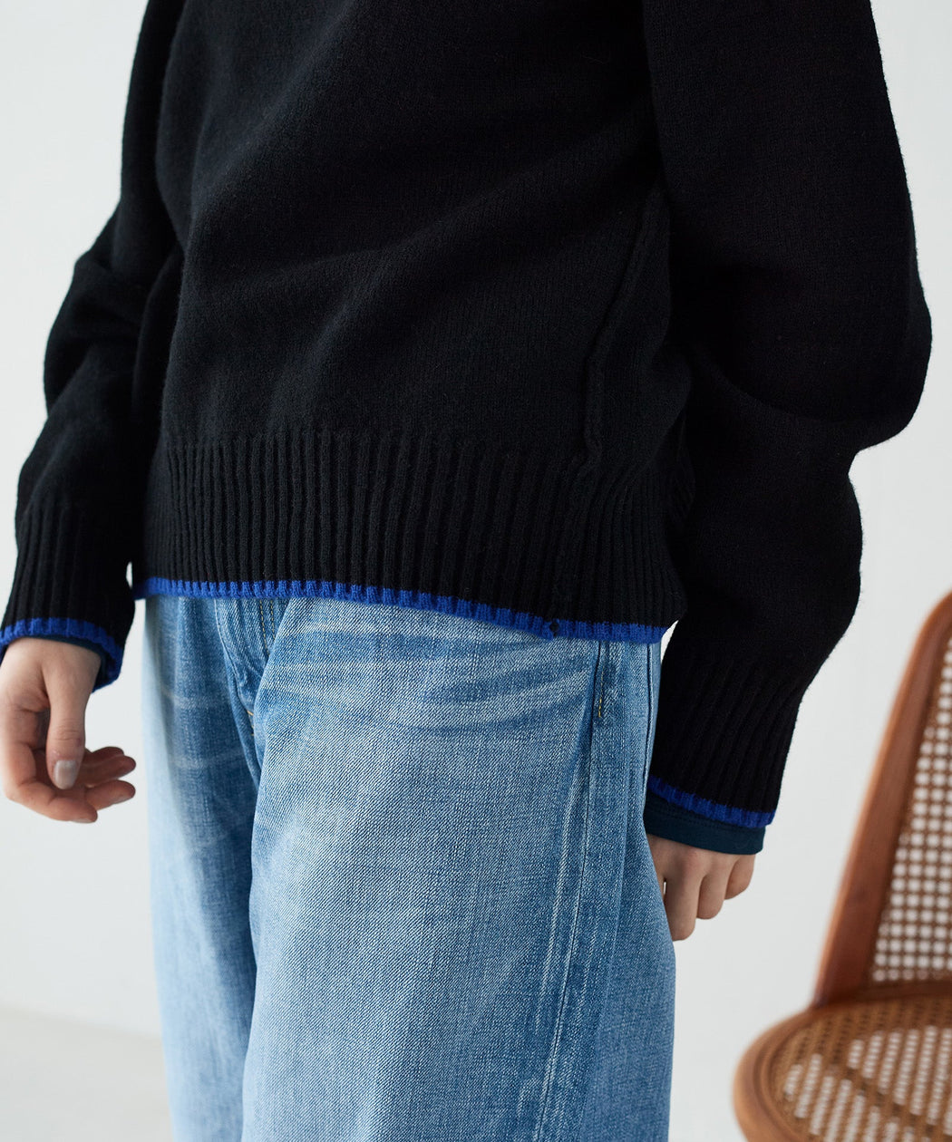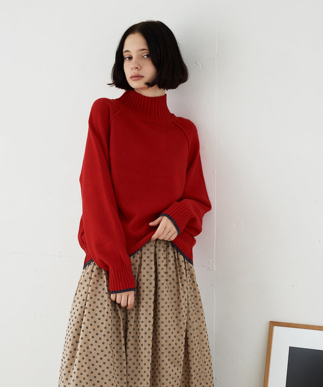 裾と袖口の配色がポイントになった、オフタートルプルオーバー。