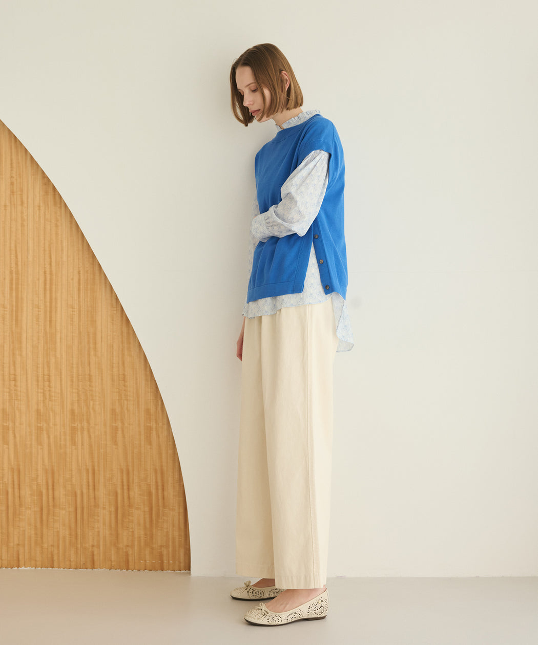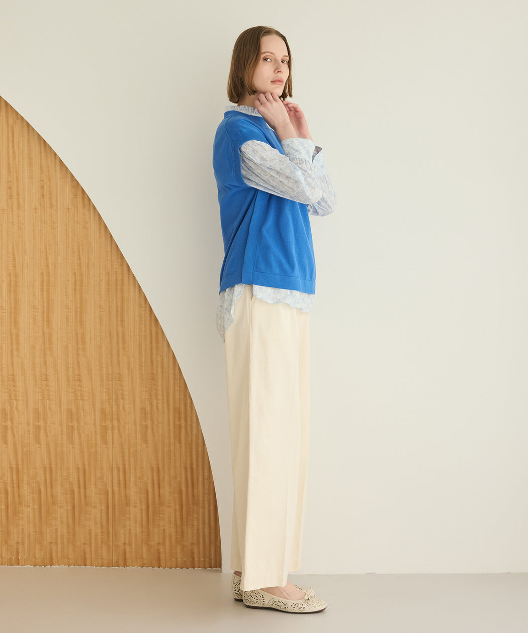 甘さのあるブラウスを程よくカジュアルダウンした、フランセーズらしい定番スタイル。