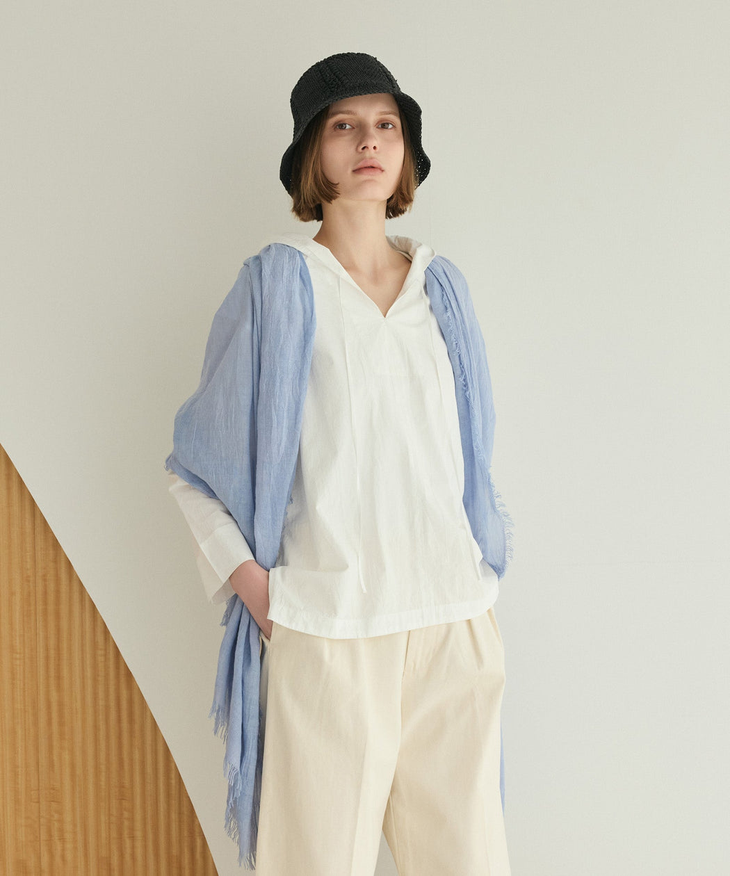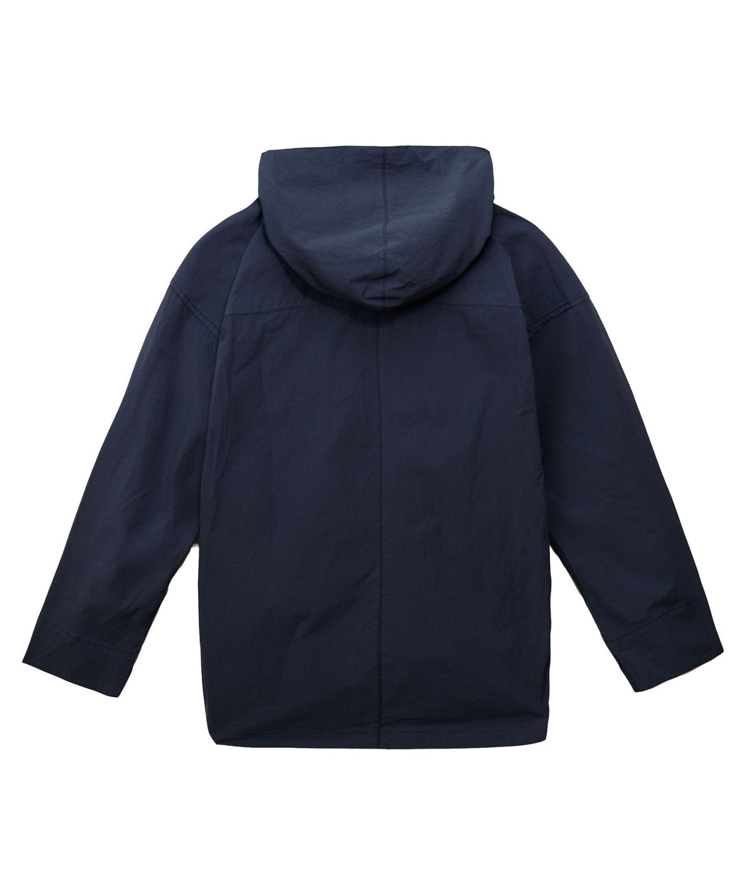 シャツの軽やかさとフーディのカジュアルさを掛け合わせたフーディシャツ。