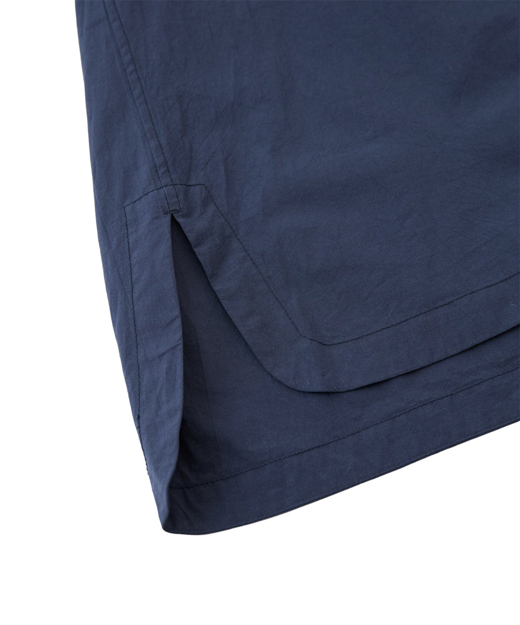 程よくゆとりのあるシルエットと、ヒップにかかる前後差のある着丈で、体のラインを拾いにくく、こなれた印象に。