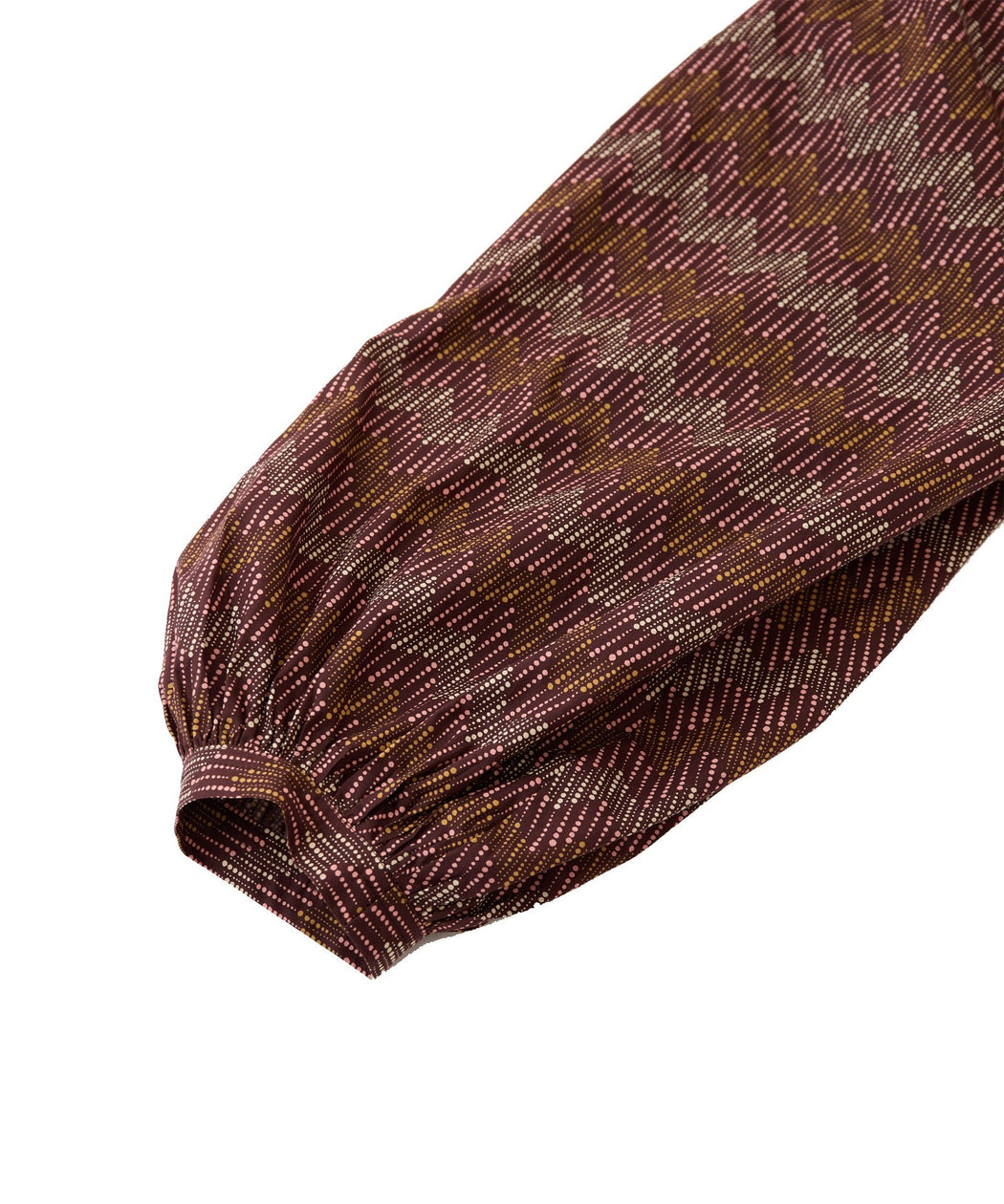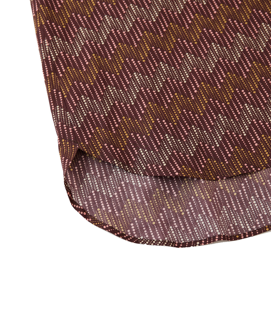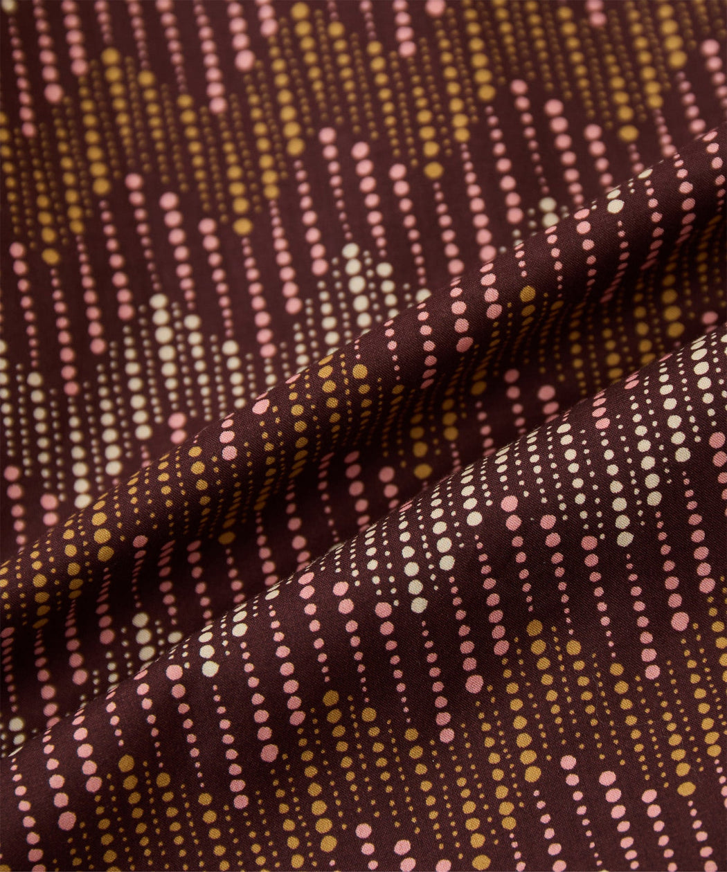 落ち着いたブラウンベースにさりげない柄が映え、大人の装いに上品な華やかさを添えます。