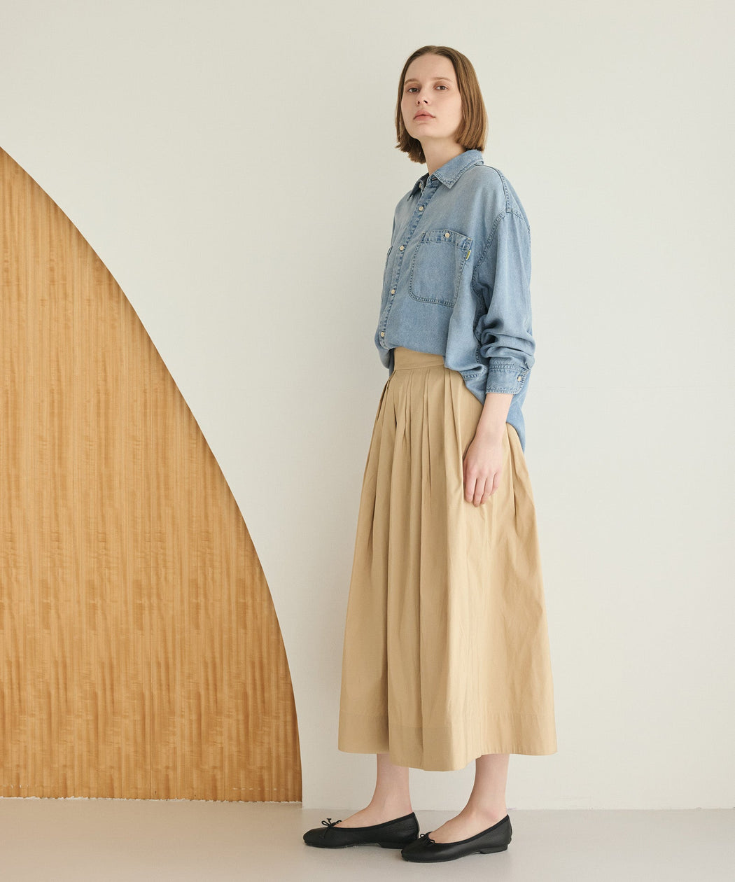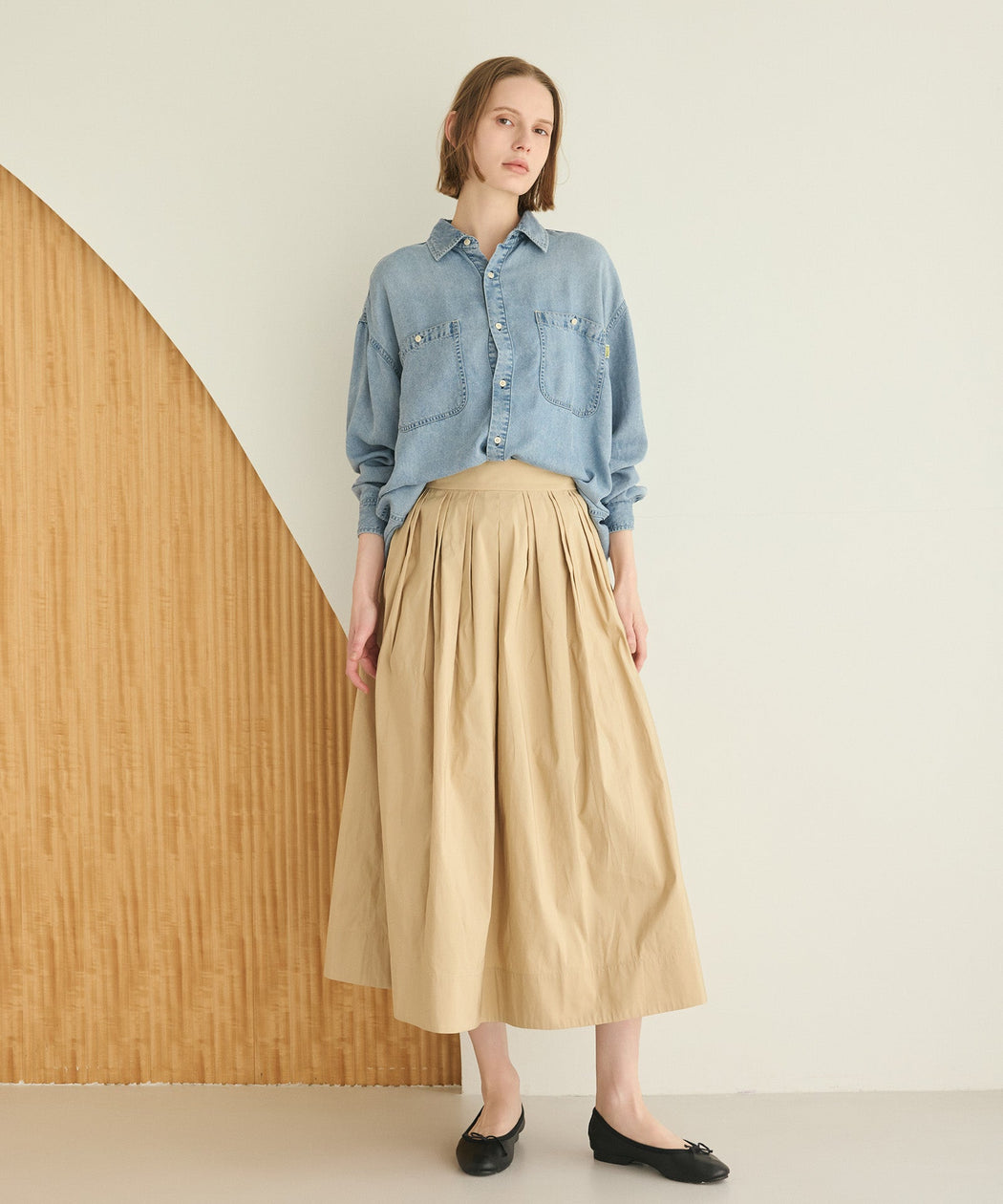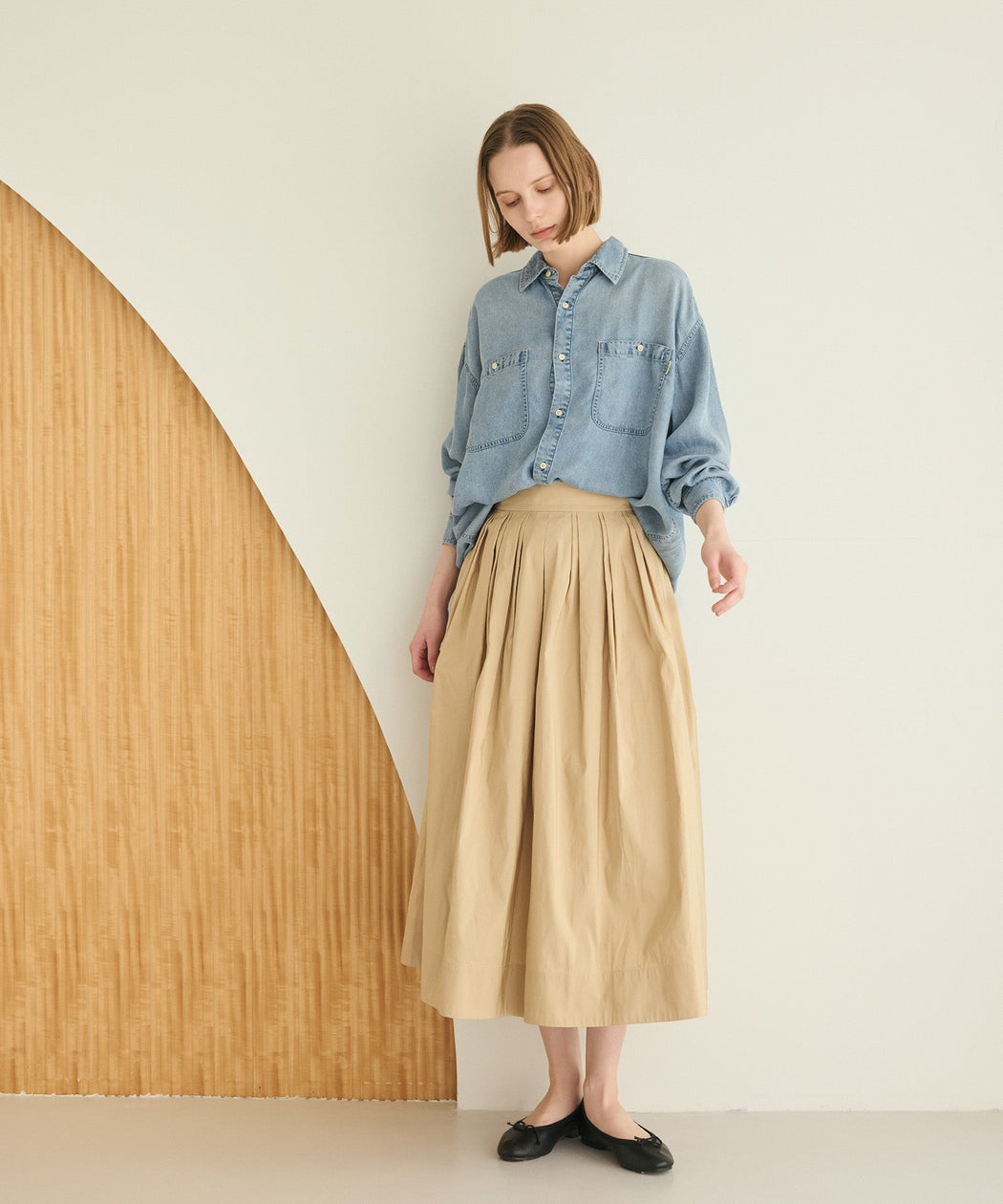 分量感のあるタックプリーツが、自然な立体感と上品な動きを生むスカート。