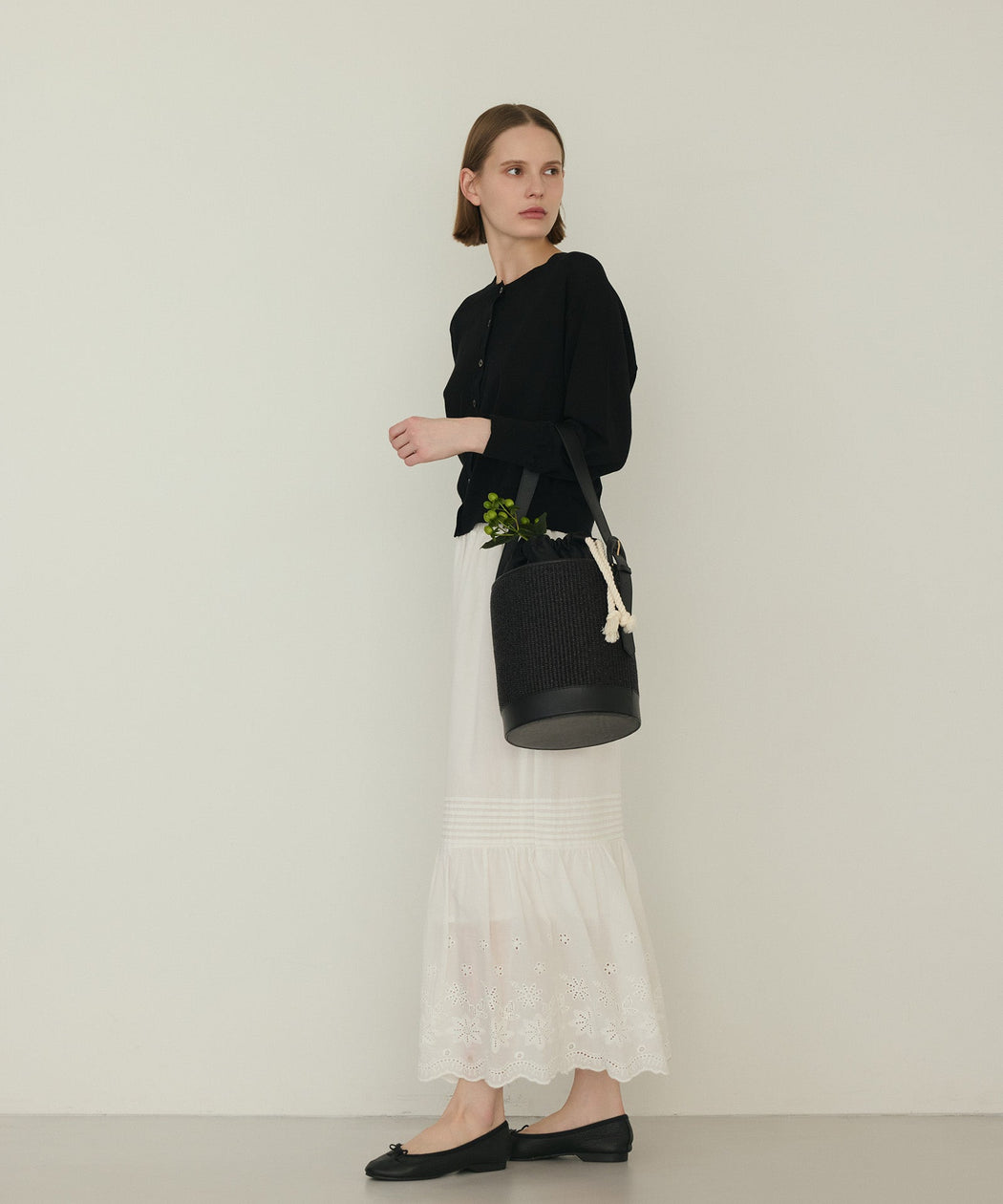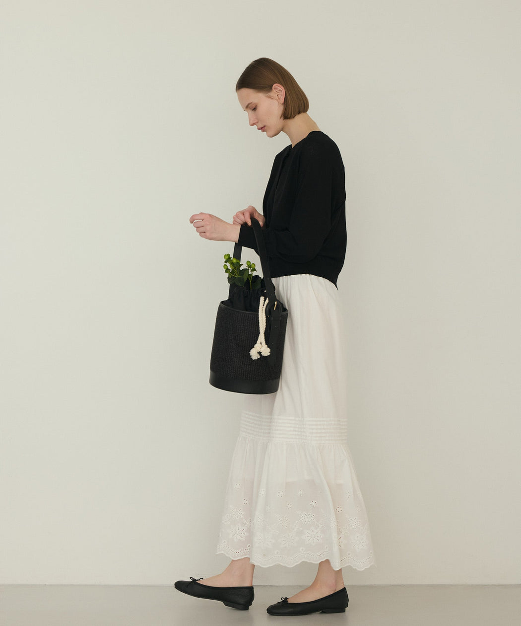 広がりすぎないシルエットとロング丈で、大人の女性にふさわしい落ち着いたバランスに仕上げました。