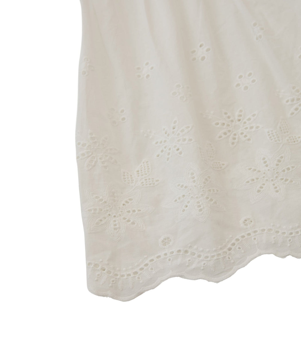 無地のニットを合わせて、レースの繊細さを引き立てた上品なスタイルに。