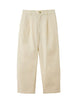 フロントにタックを入れ、腰まわりにゆとりを持たせたタックパンツ。
