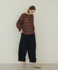 ベーシックなニットと合わせれば、パンツのフォルムが際立つ洗練された印象に。足元はフラットシューズで抜け感をプラスするのもおすすめです。