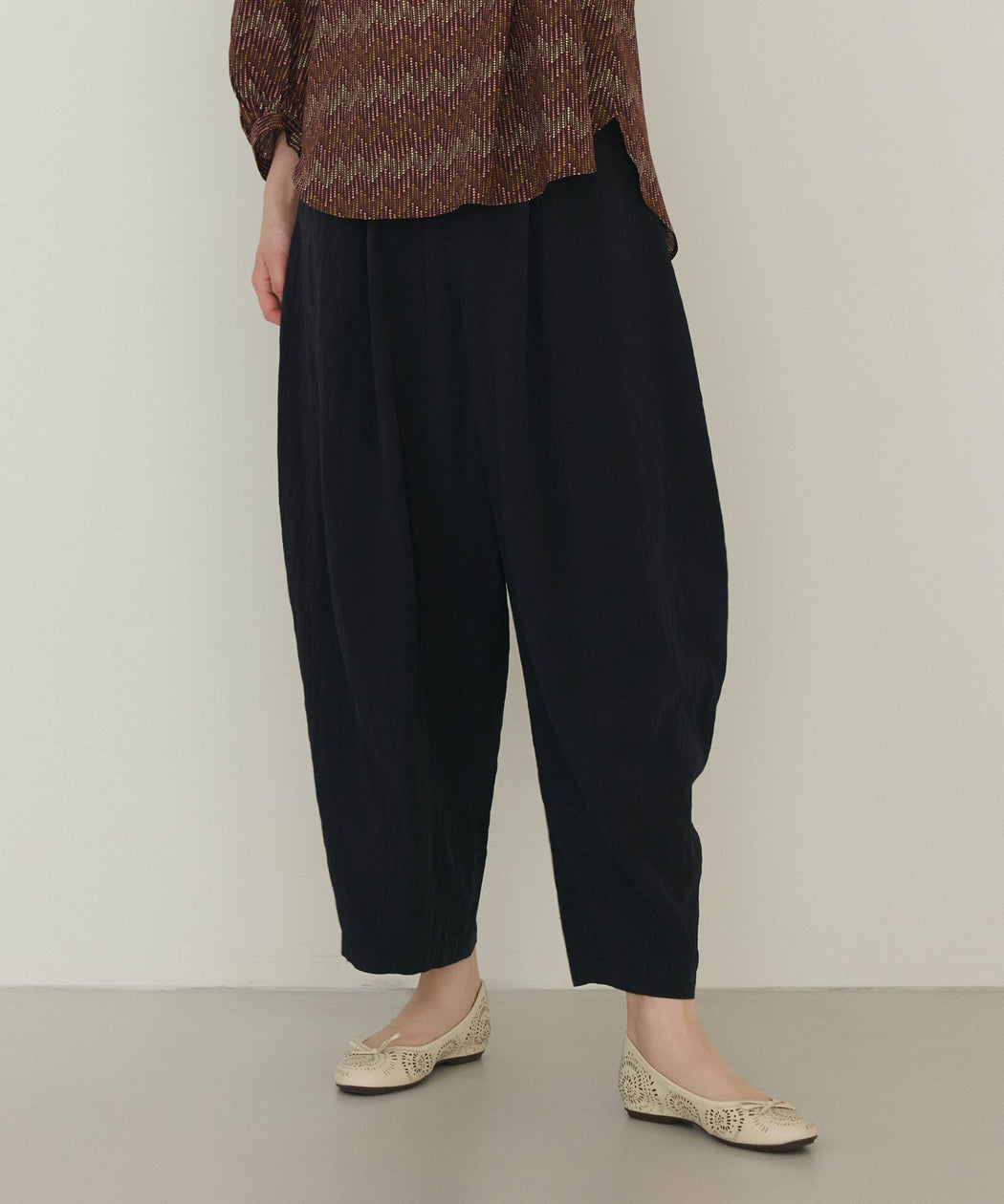 丸みのあるシルエットの抜け感パンツ