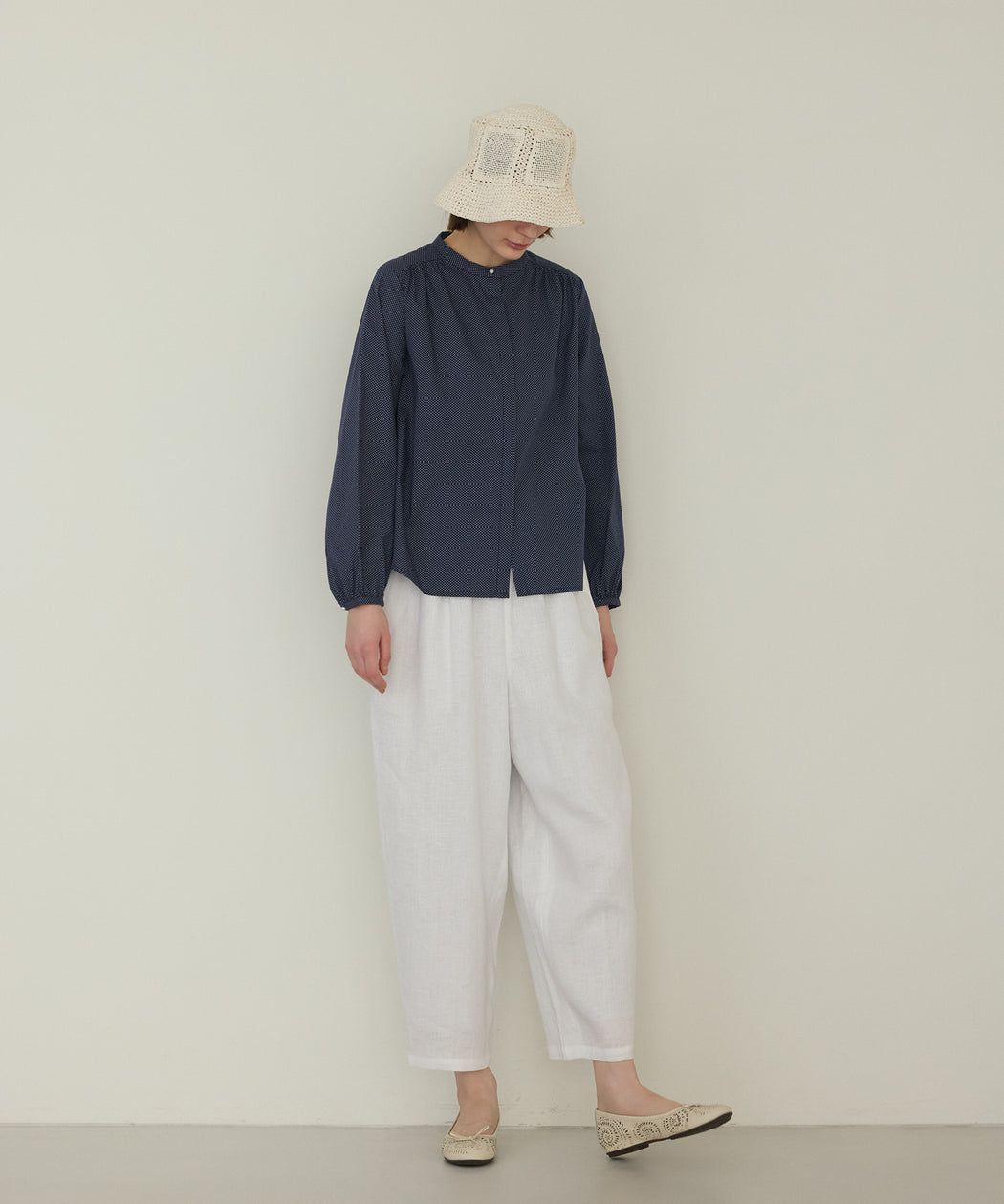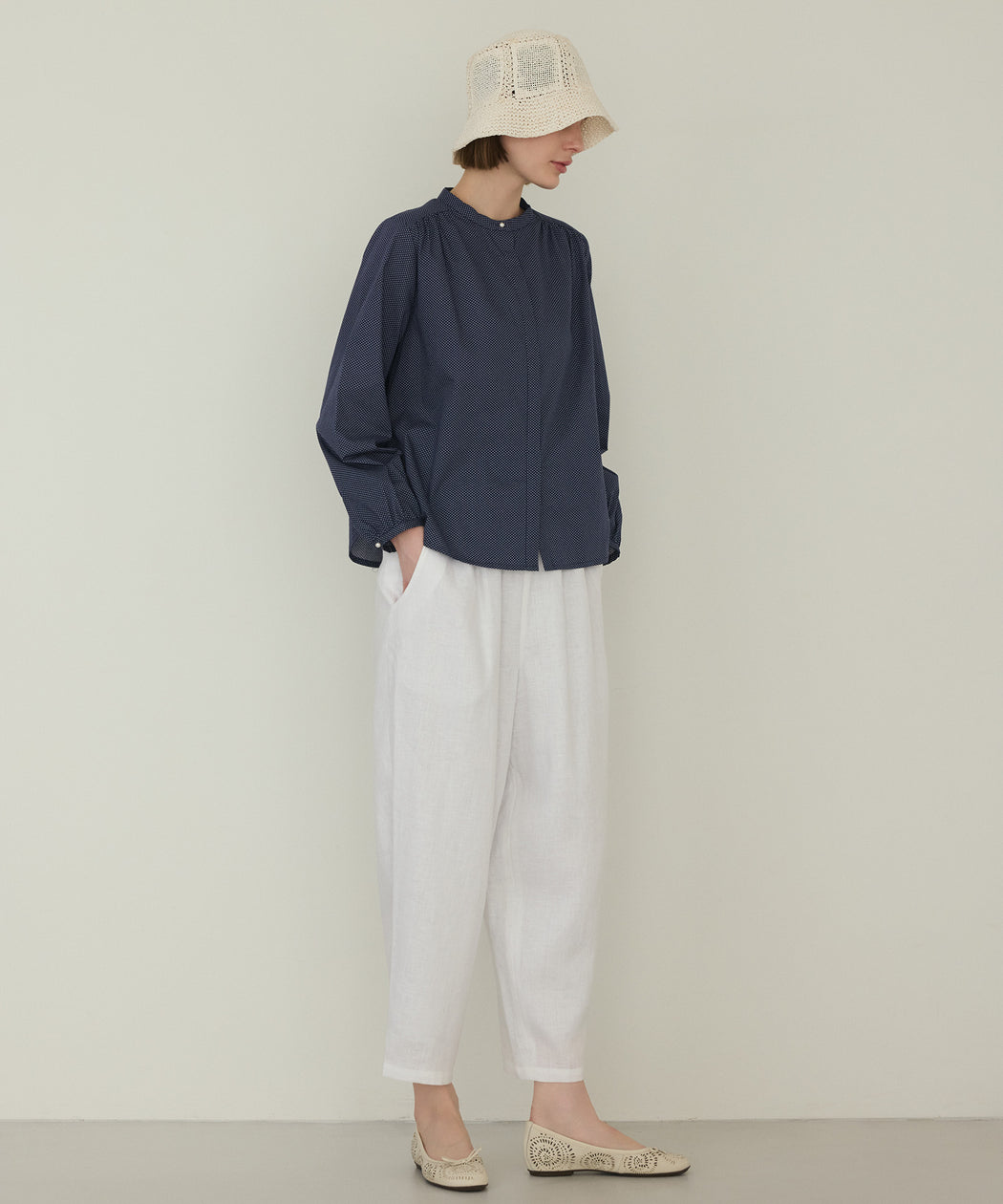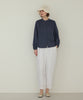 腰まわりにゆとりを持たせ、裾に向かって緩やかに丸みを描くバレルシルエット。足首がのぞくクロップド丈で、軽やかでバランスの良い印象に仕上げました。