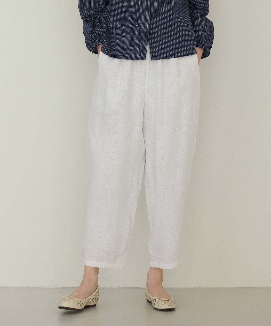ウォッシャブルリネンバレルクロップドパンツ