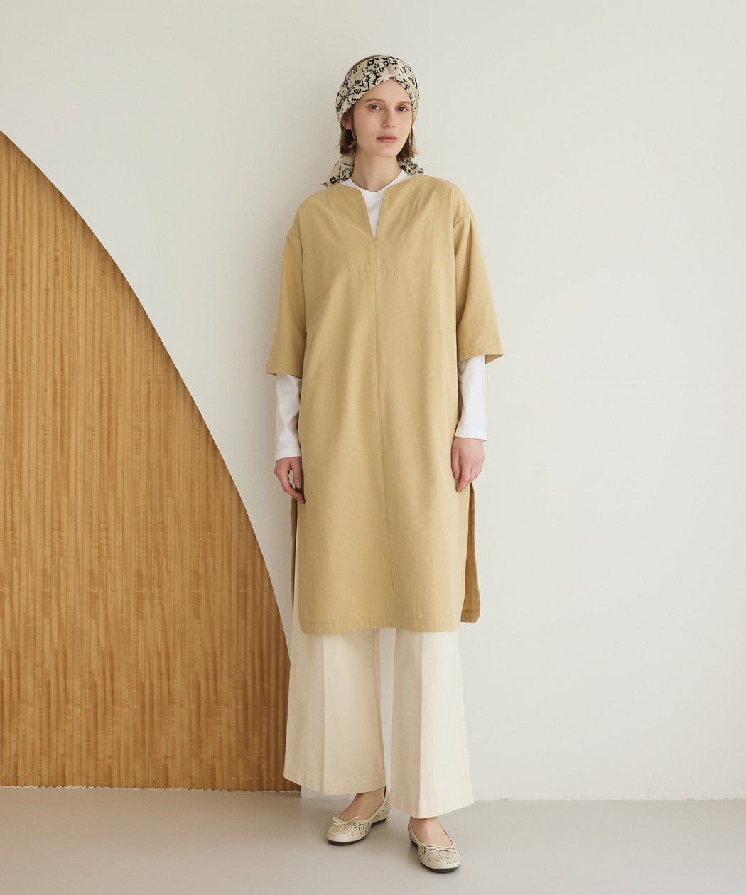 抜け感のキーネックで、重ね着が映えるリラックスワンピース