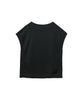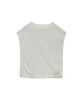 肩先を自然に覆うフレンチスリーブデザインで、腕まわりをすっきりと見せつつ、レイヤードしやすい一枚です。