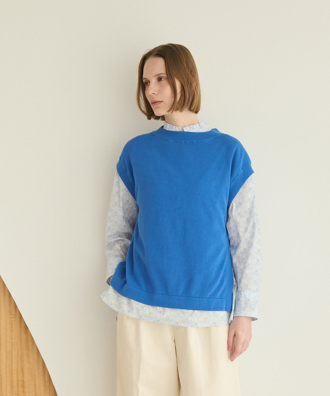 程よく立ち上がるボトルネックが印象的な、フレンチスリーブベスト。