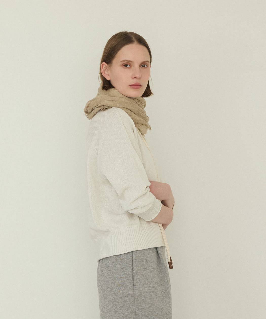シンプルながらも素材感が引き立ち、コーディネートにさりげないニュアンスをプラスします。