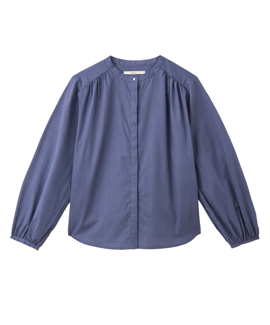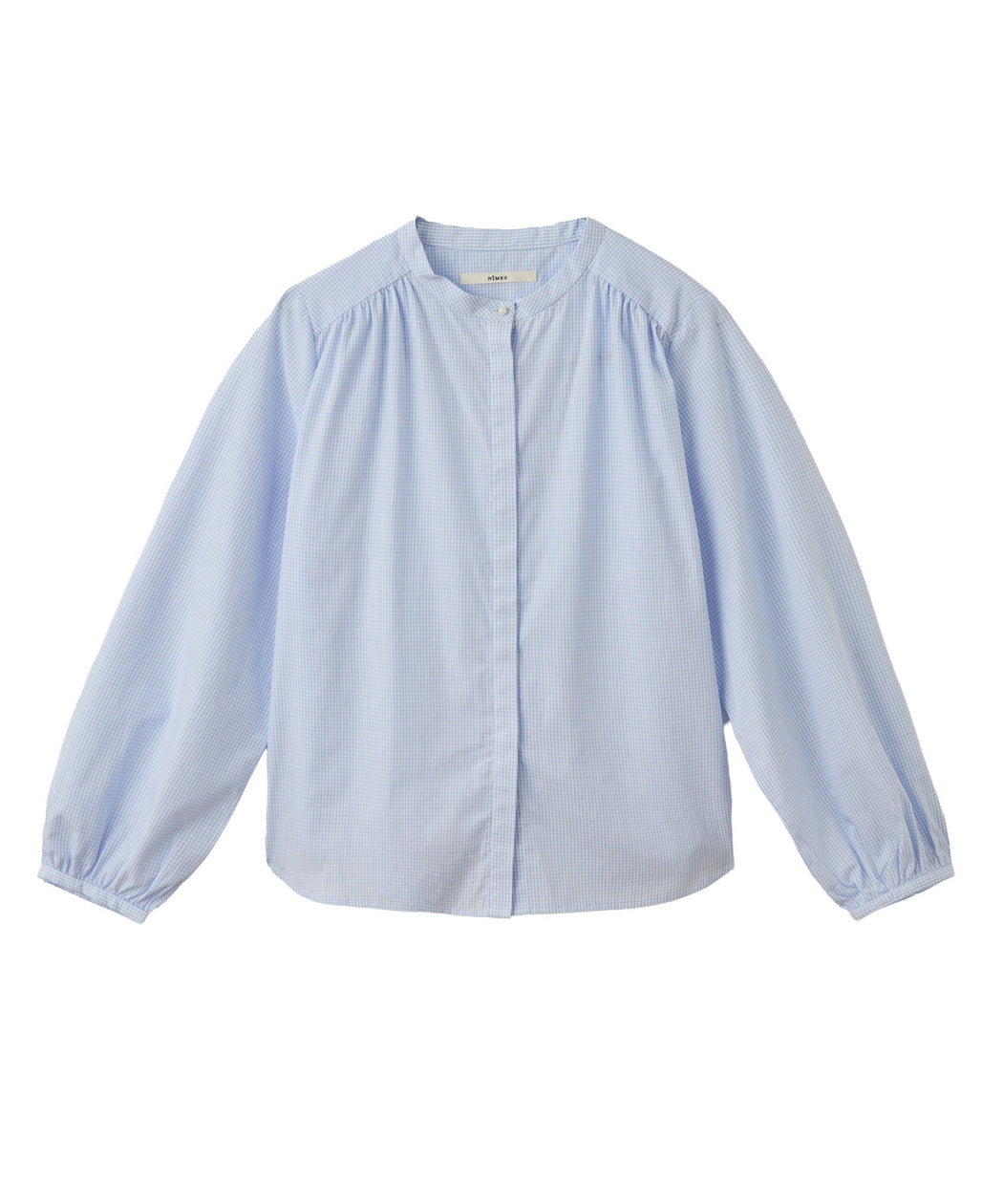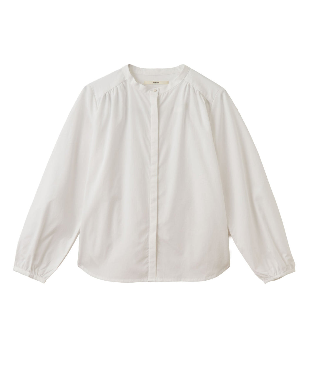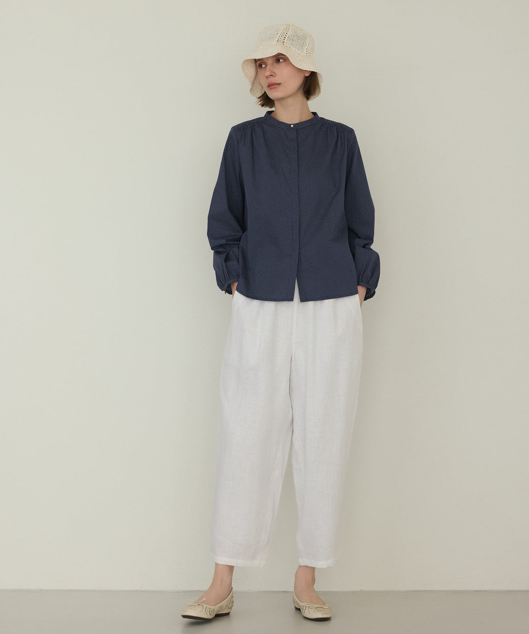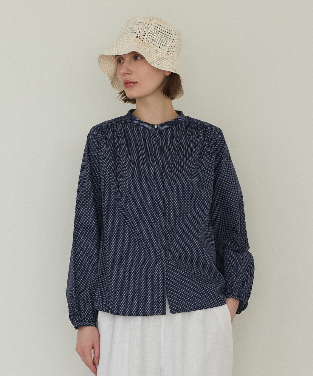 肩まわりに施したギャザーがやわらかな立体感を生み、ふんわりとしたスリーブが優しい雰囲気を演出。