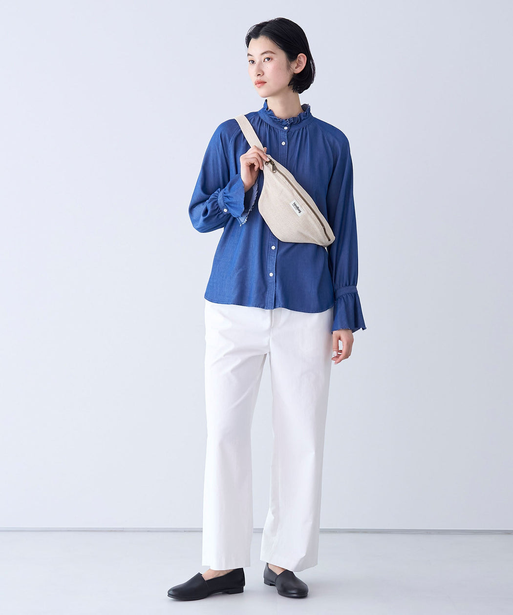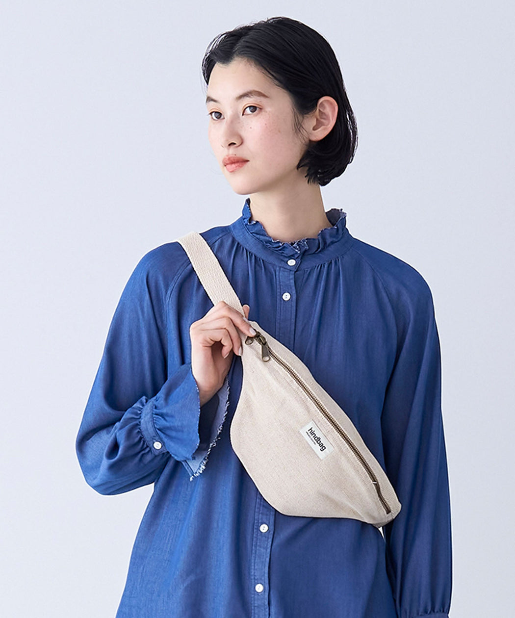 厚みのあるしっかりとしたオーガニックコットンとジュートを使用しているため、日常使いでも型崩れしにくい のが特徴。 調節可能なショルダーヒモで、春はコートの上に、夏にはT シャツの上にとスタイリングに合わせてオールシーズン楽しめます。