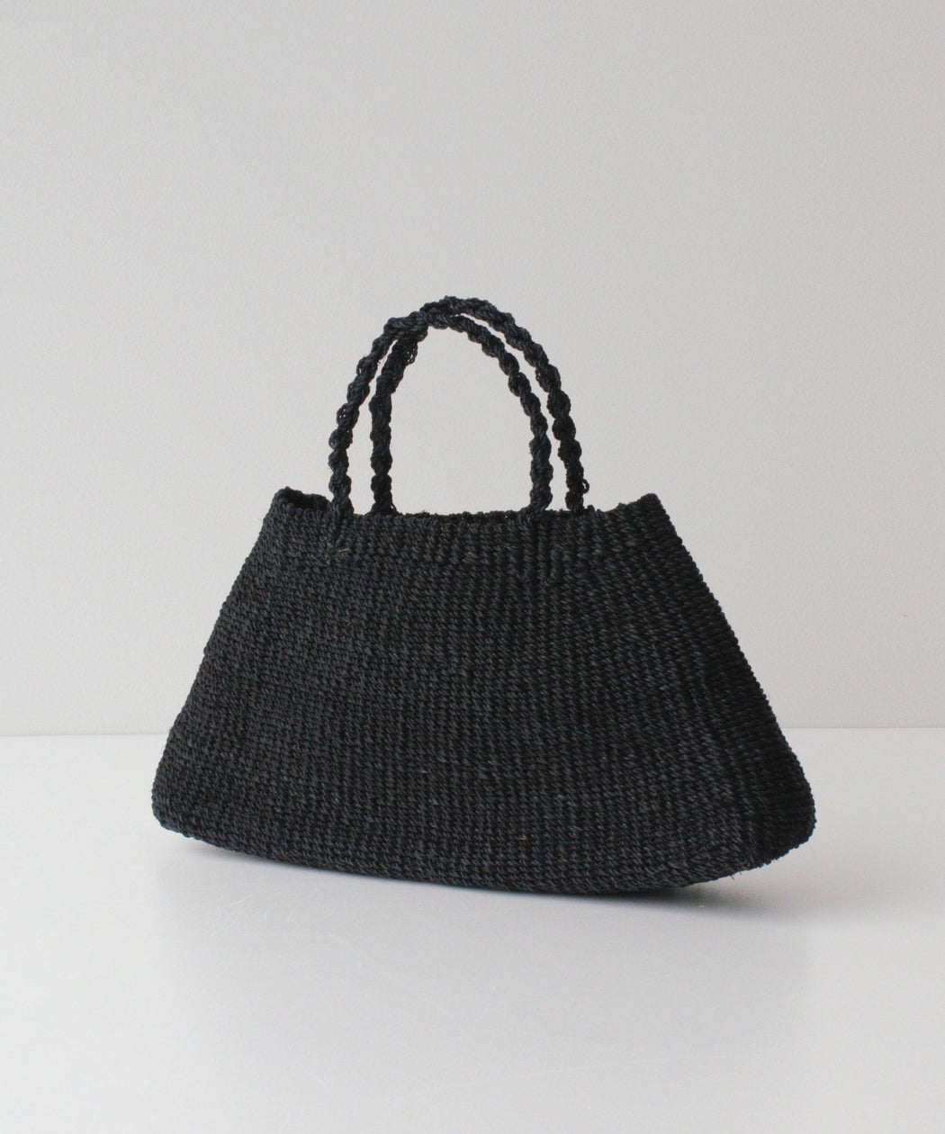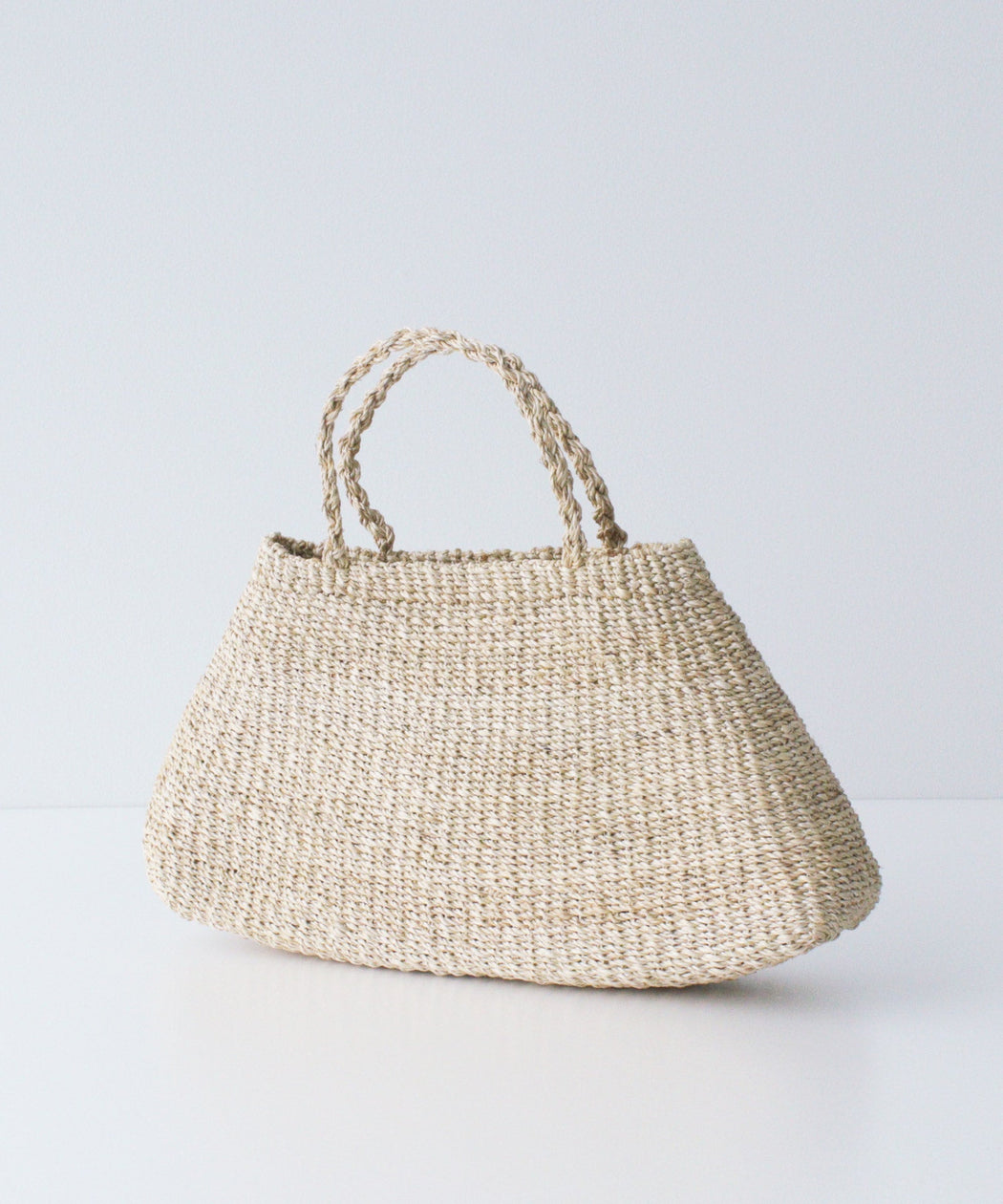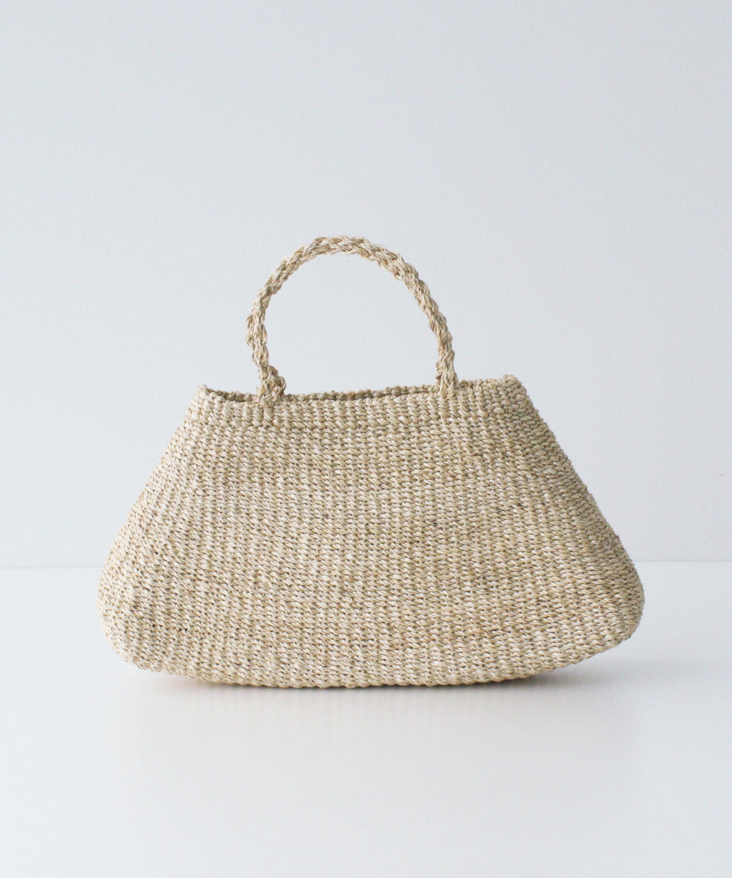 丸みのある三角フォルムが特徴的なアバカ素材のカゴバック