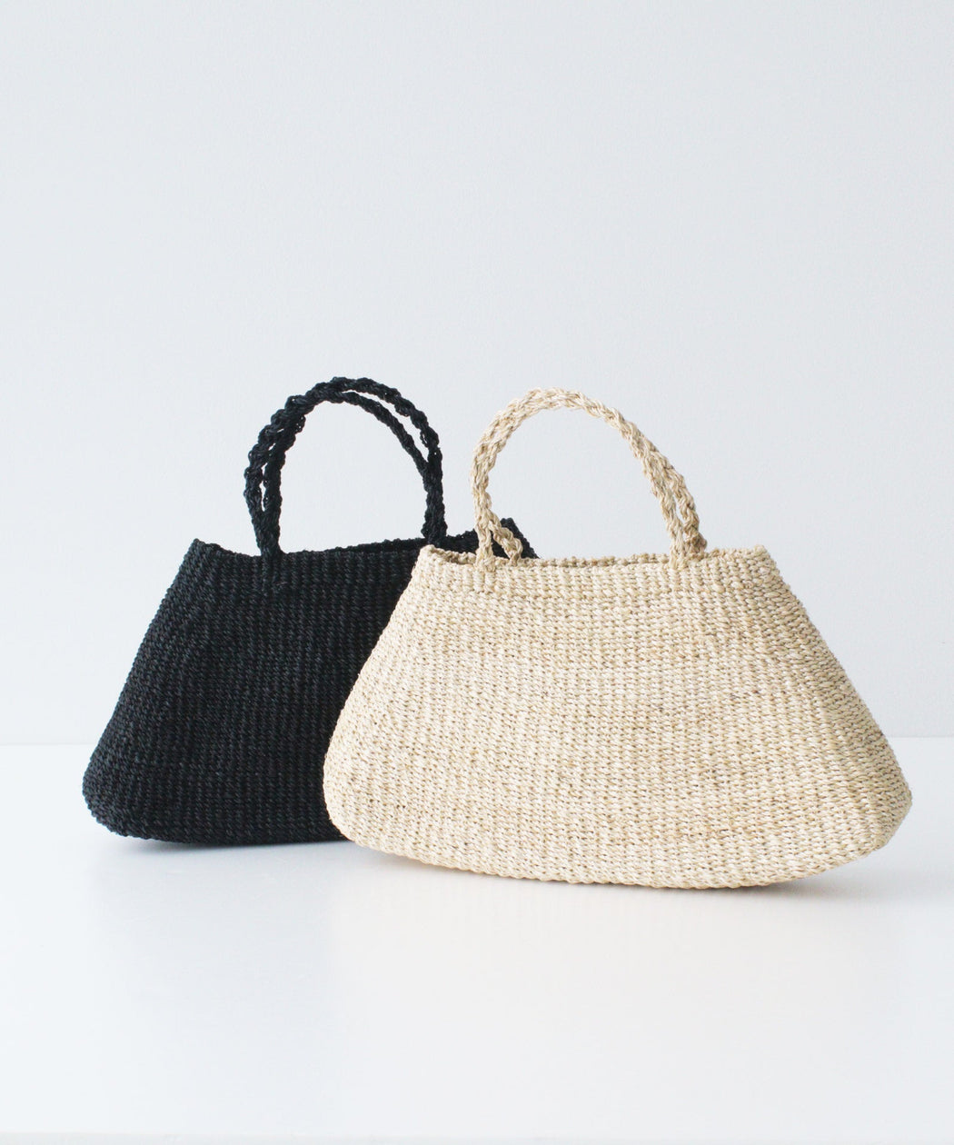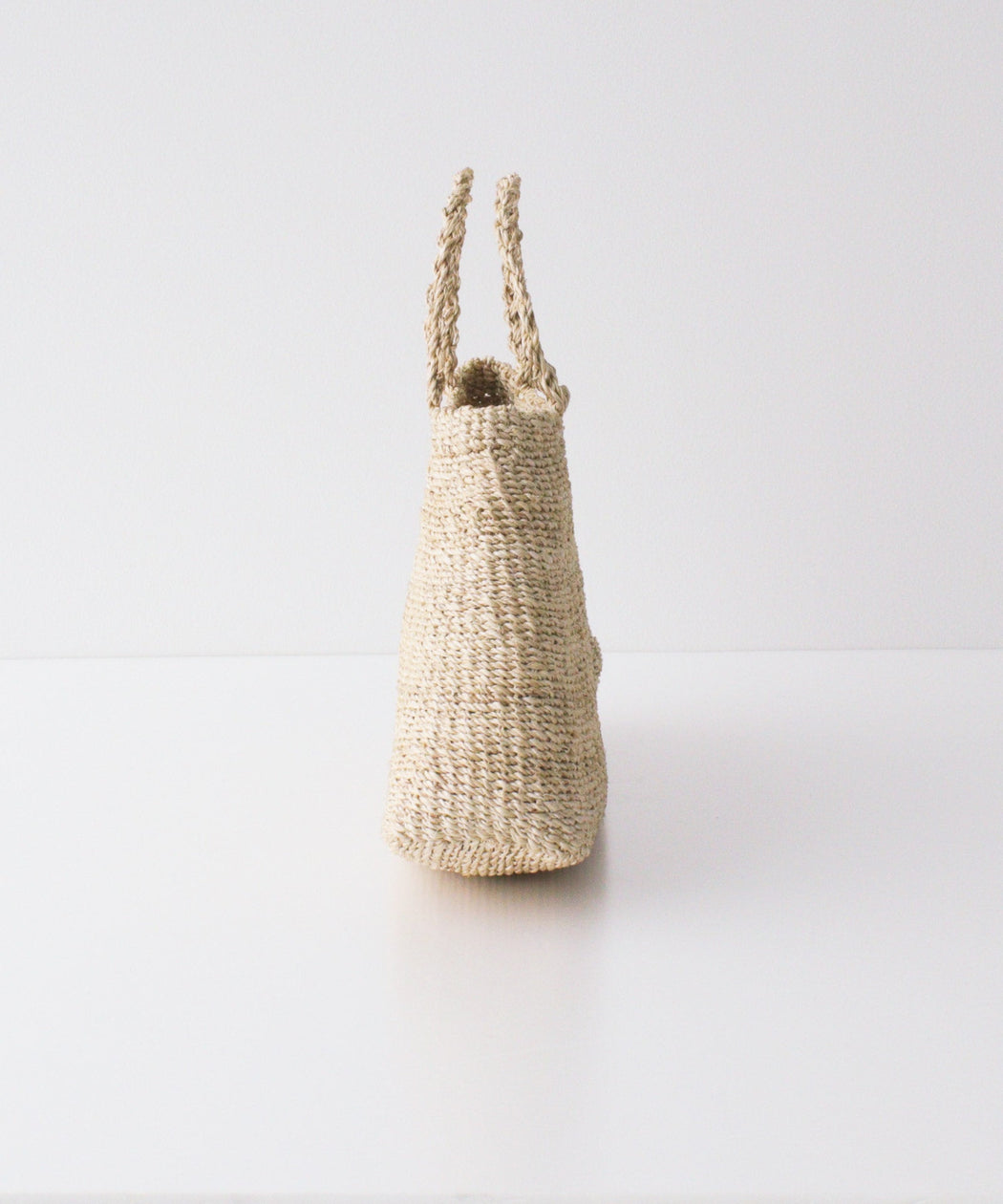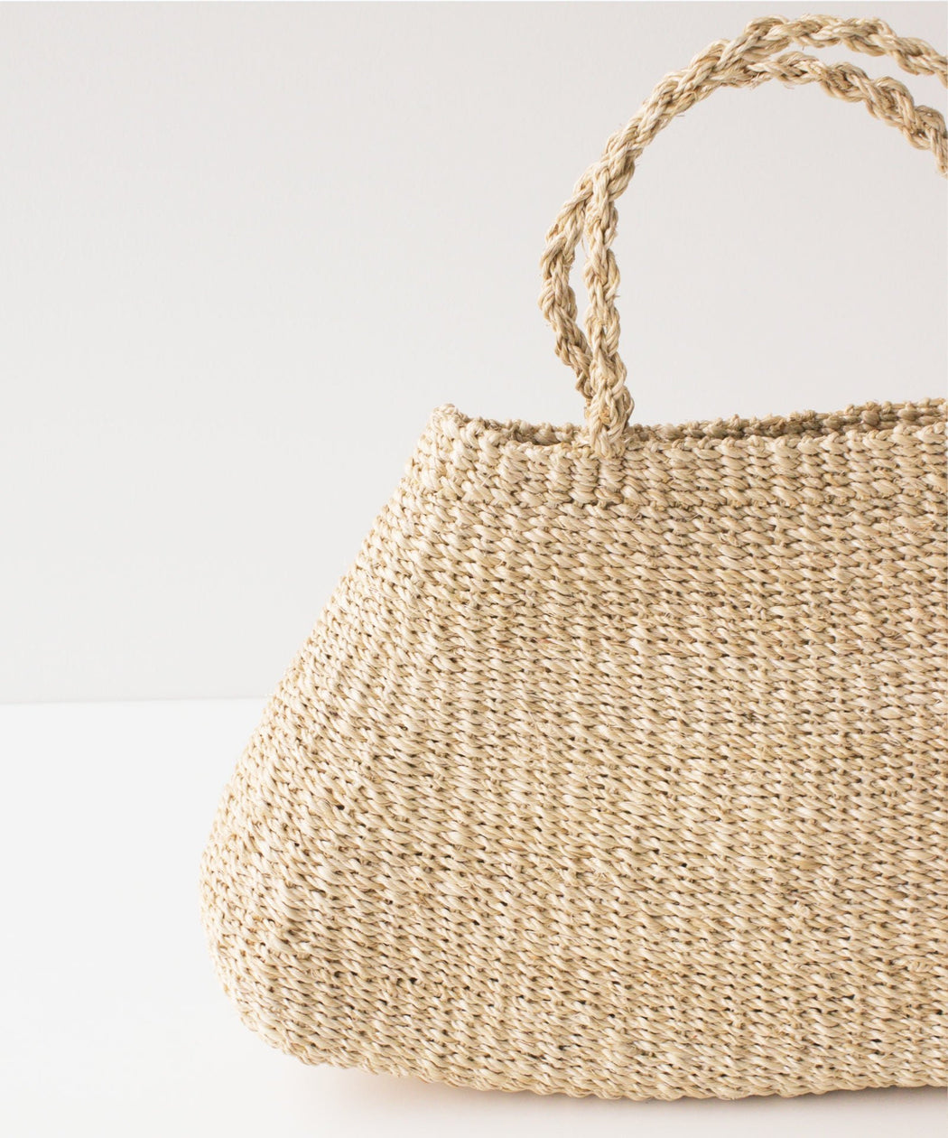丸みのある三角フォルムが特徴的なアバカ素材のカゴバック