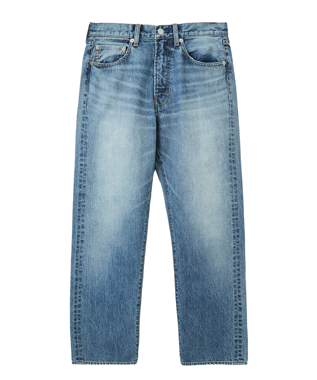ヴィンテージライクな加工にこだわった仕上がりが特徴のストレートデニム。軽くて履き心地が抜群のため普段のデイリー使いから仕事や旅行まで万能に活躍してくれます。腰まわりはスッキリとしておりストレートのきれいなシルエットがポイントです。